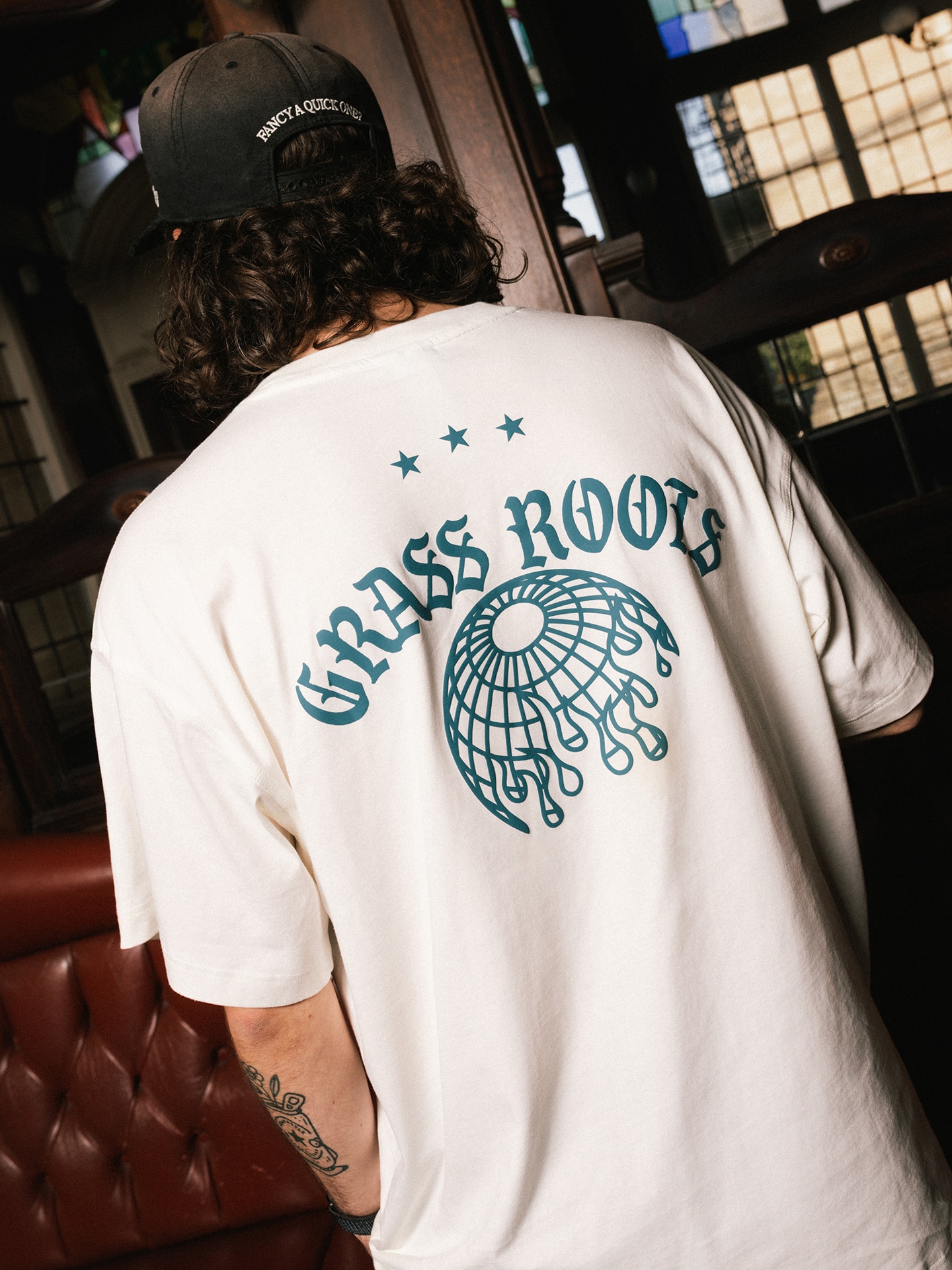 Uzupełnieniem sneakersów są track jacket, spodnie i t-shirt z haftowanym napisem „Grass Roots”.