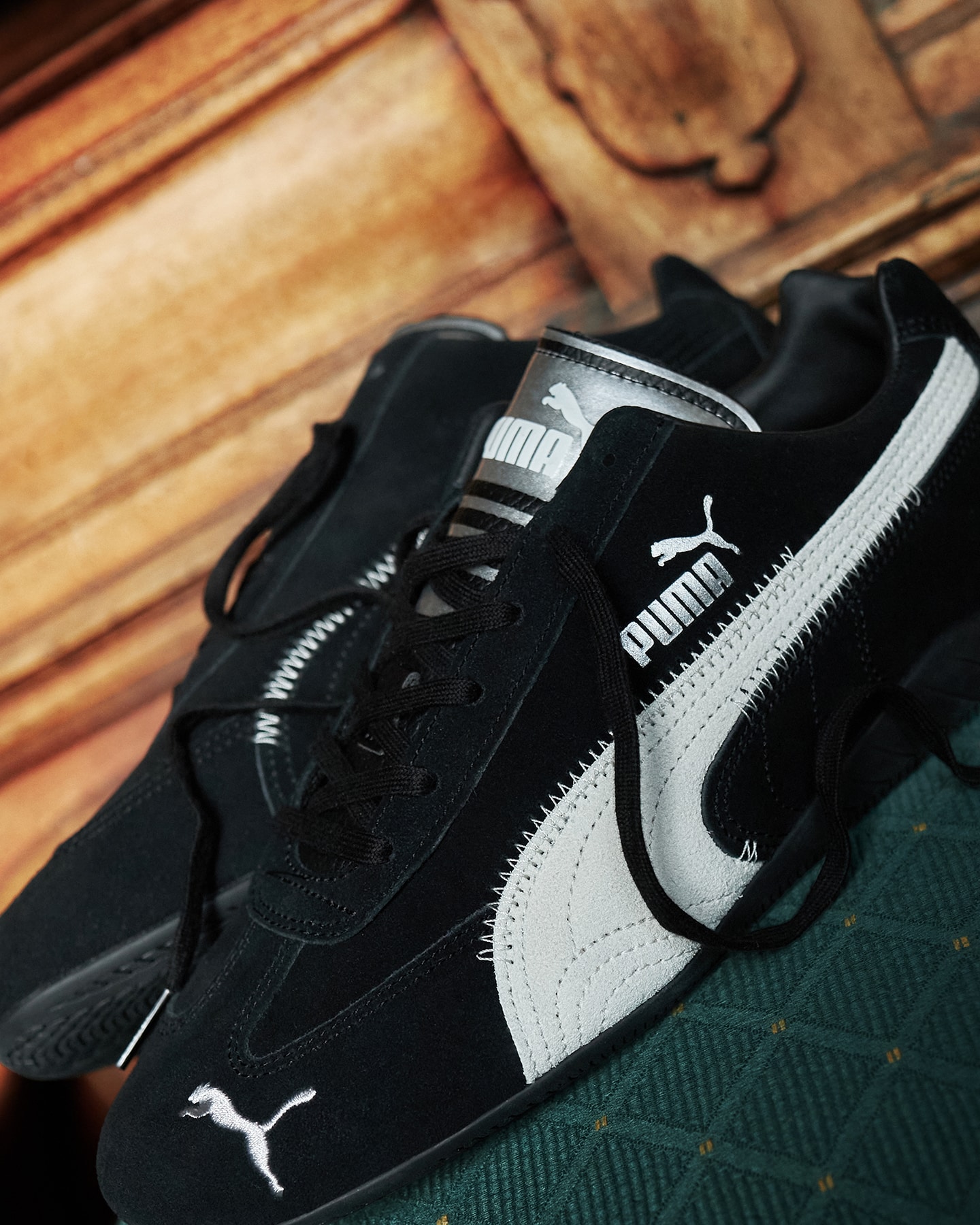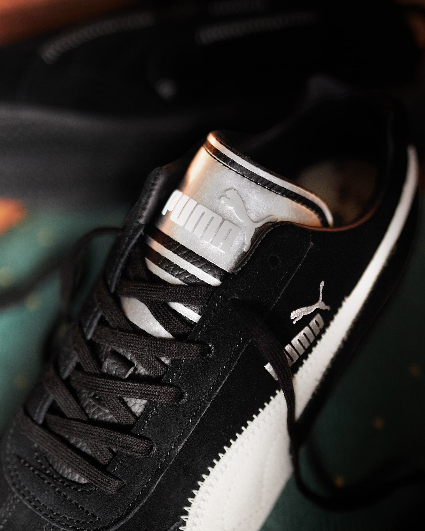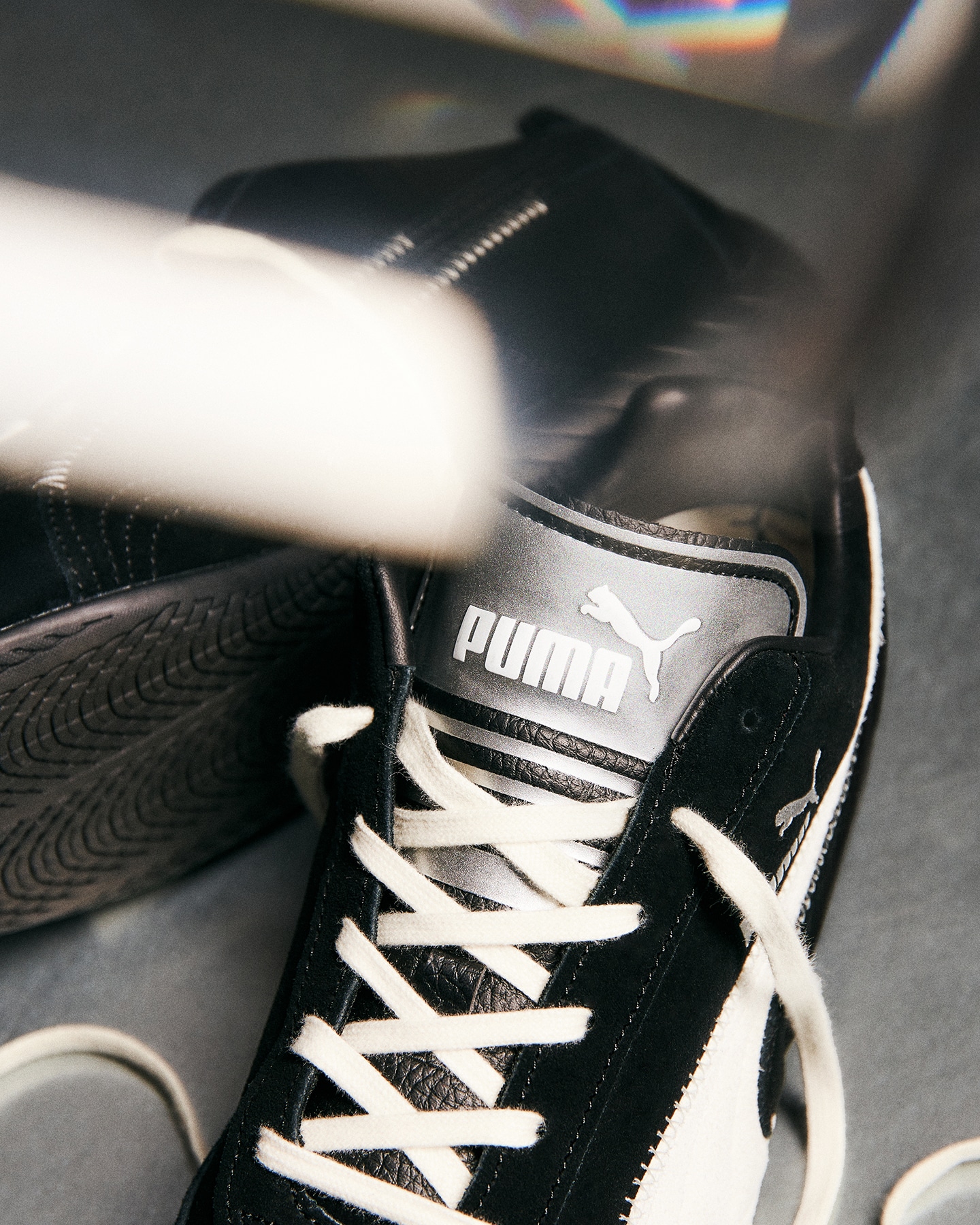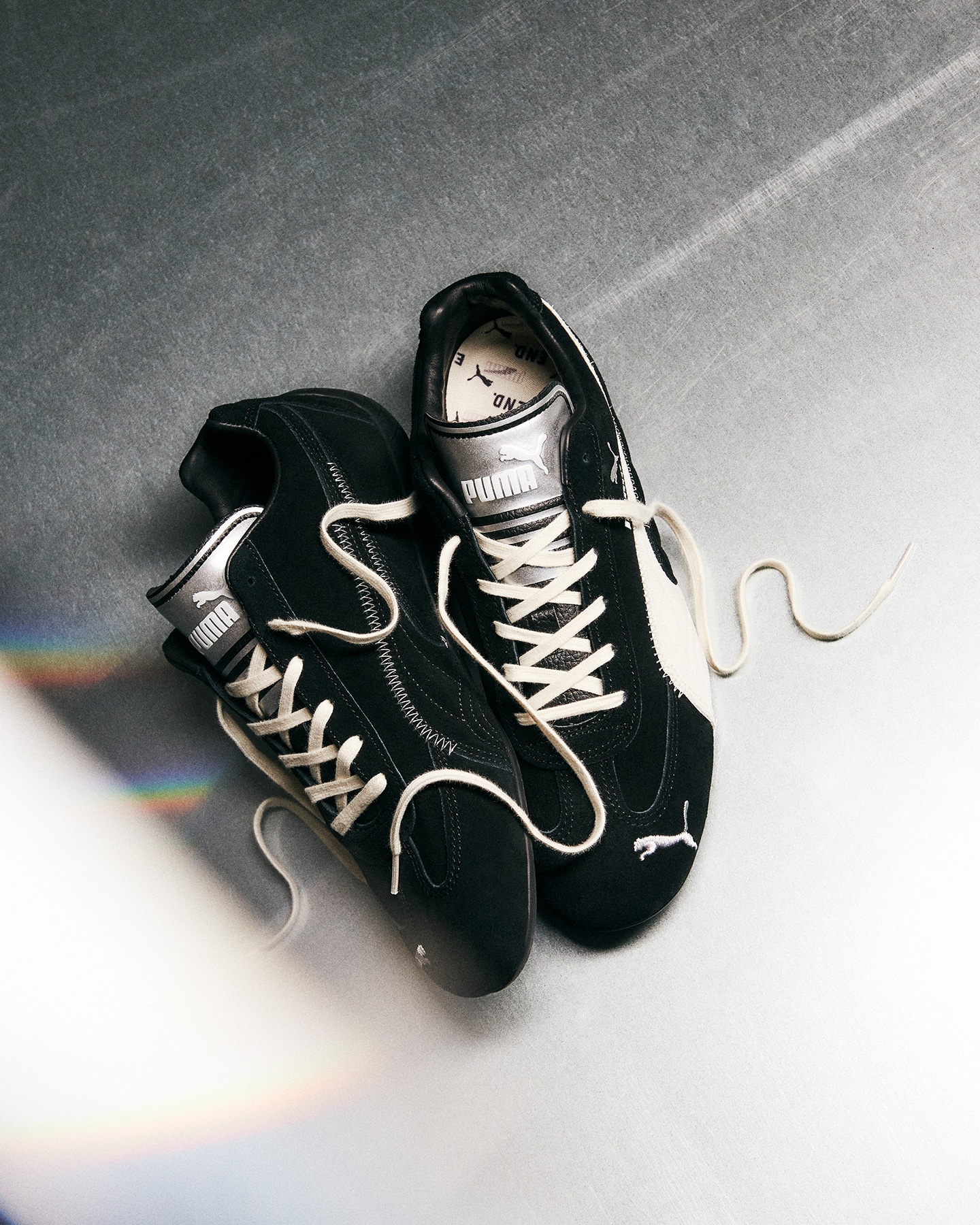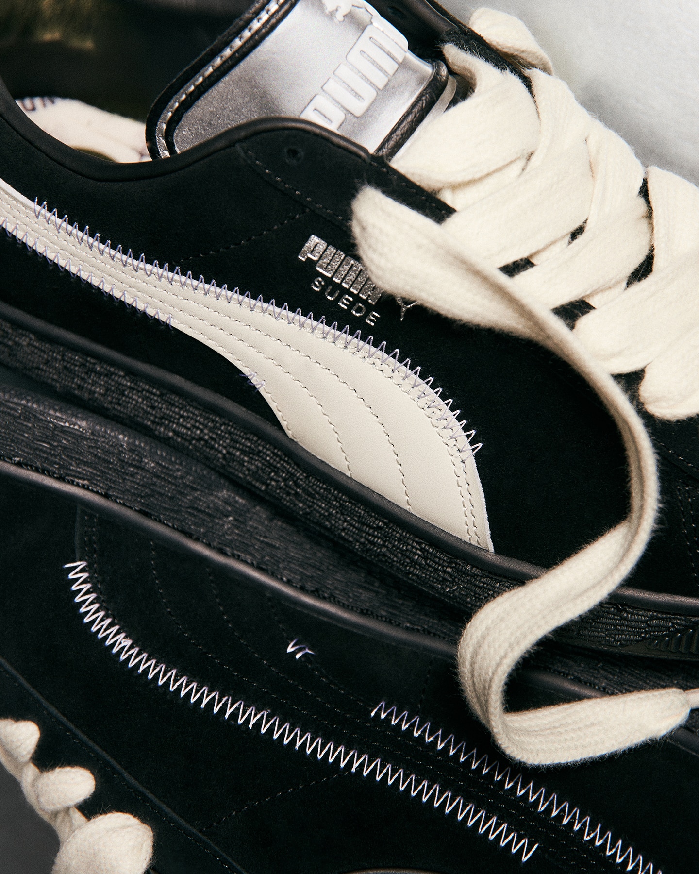 W kolekcji znalazły się dwa ponadczasowe modele: Speedcat, znany z motorsportowego DNA, oraz Suede – ikona streetwearu. Oba otrzymały minimalistyczne, czarno-białe wykończenie, srebrne języki i detale w stylu Y2K. Białe Formstripy kontrastują z głęboką czernią zamszu, a srebrne logo PUMA podkreśla elegancki charakter projektu.