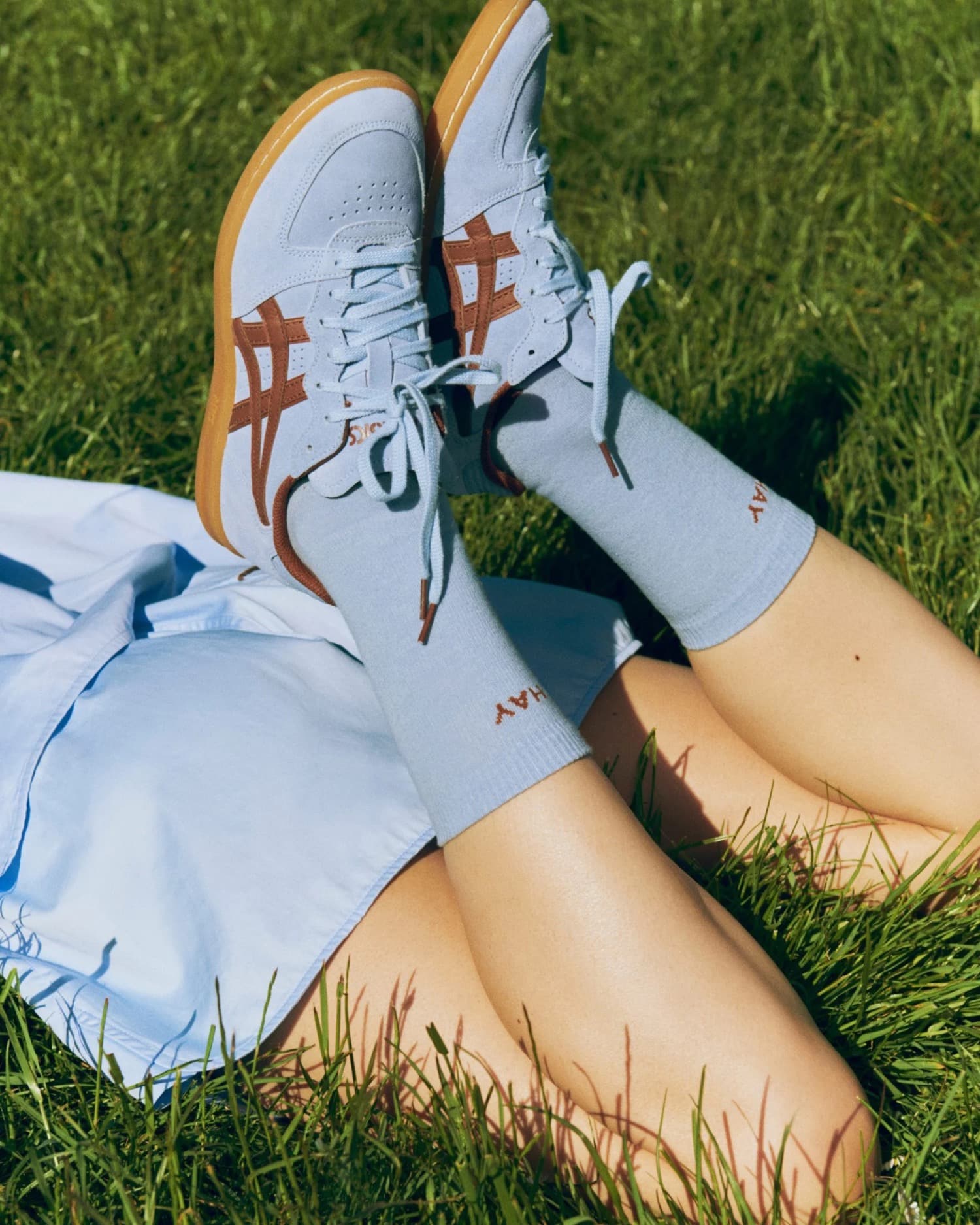 Mette Hay, współzałożycielka HAY, podkreśla inspirację piżamami Outline, które doskonale oddają paletę barw kolekcji. Sneakersy, torba Weekend Bag i skarpety Everyday Socks to idealne połączenie skandynawskiej estetyki z funkcjonalnością ASICS.