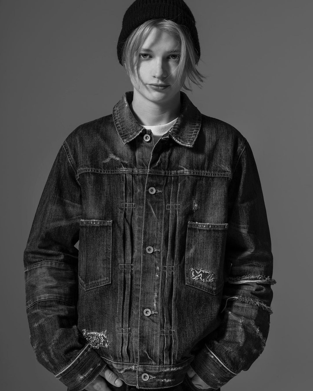 Na wstępie przyjrzyjmy się kolekcji denimowej, która obejmuje katanę oraz wąskie spodnie. W obu przypadkach wykonano je z czarnego denimu w mocno spranej stylistyce. Dodatkowo ich projekt dopieszczono dużą ilością przetarć, zagnieceń i efektami znoszenia, dzięki czemu uzyskujemy świetny klimat vintage. Zresztą sami zerknijcie na dołączone poniżej fotografie.