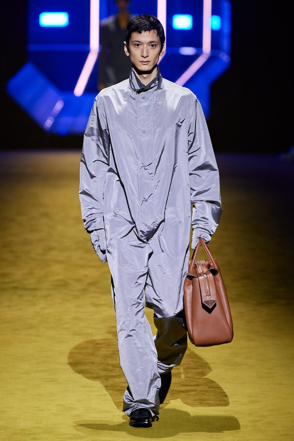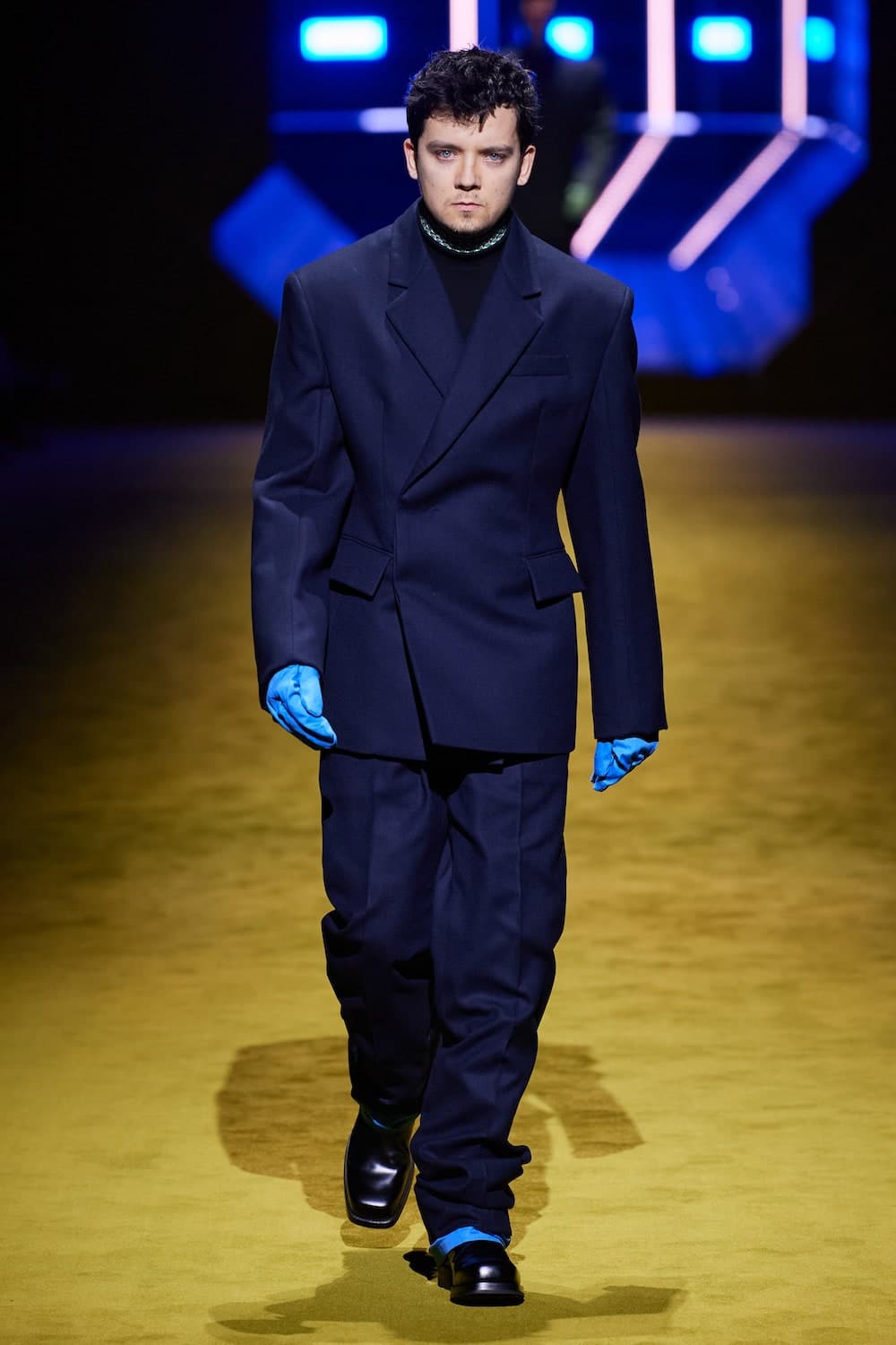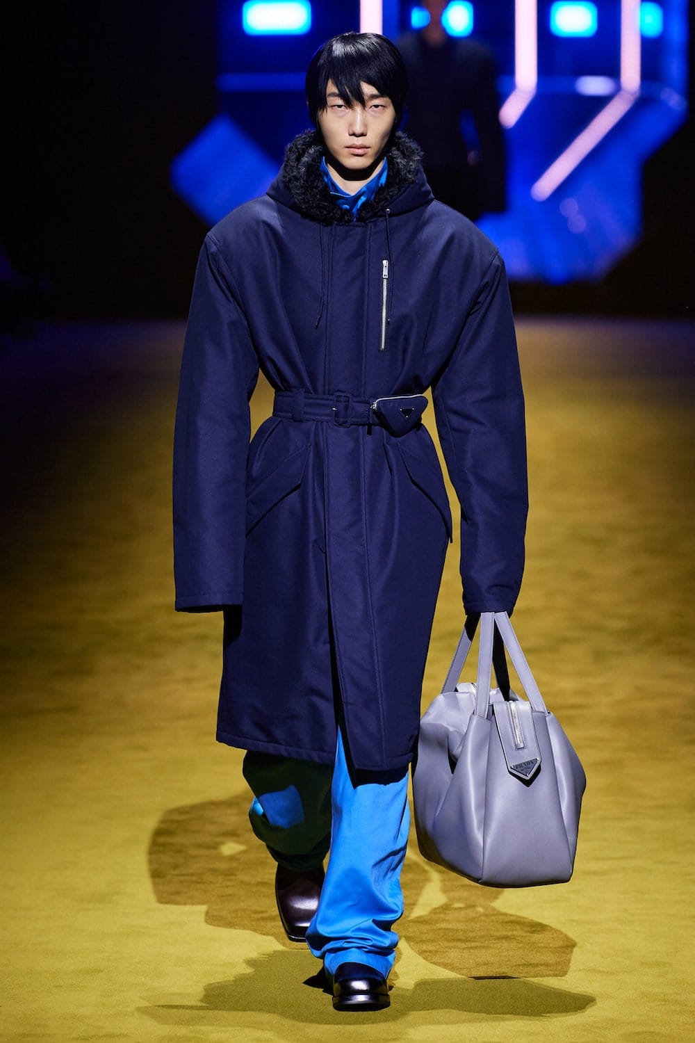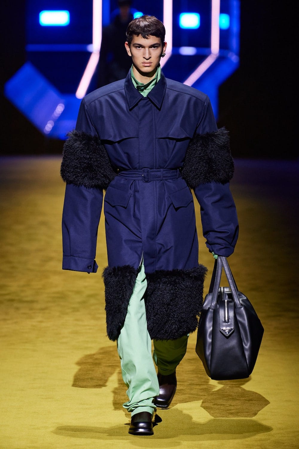 Zatem po takim oświadczeniu nie dziwi nas obecność chociażby kombinezonów czy obszernych płaszczy, które mogą się kojarzyć z tymi, które nosili kiedyś prezesi fabryk. To co jeszcze wyróżnia tę kolekcję to kroje z szerokimi ramionami i sporych rozmiarów rękawy (zerknijcie na marynarki oraz kurtki wojskowe MA-1, tzw. bomberki). Warto również zwrócić uwagę na spodnie, które są zdecydowanie dłuższe niż to co widywaliśmy w ostatnich latach, przez co nogawki tworzą warstwy spoczywając na butach. Innym ciekawym rozwiązaniem są futerkowe wykończenia u dołu płaszczy lub na ich rękawach w okolicach łokcia.