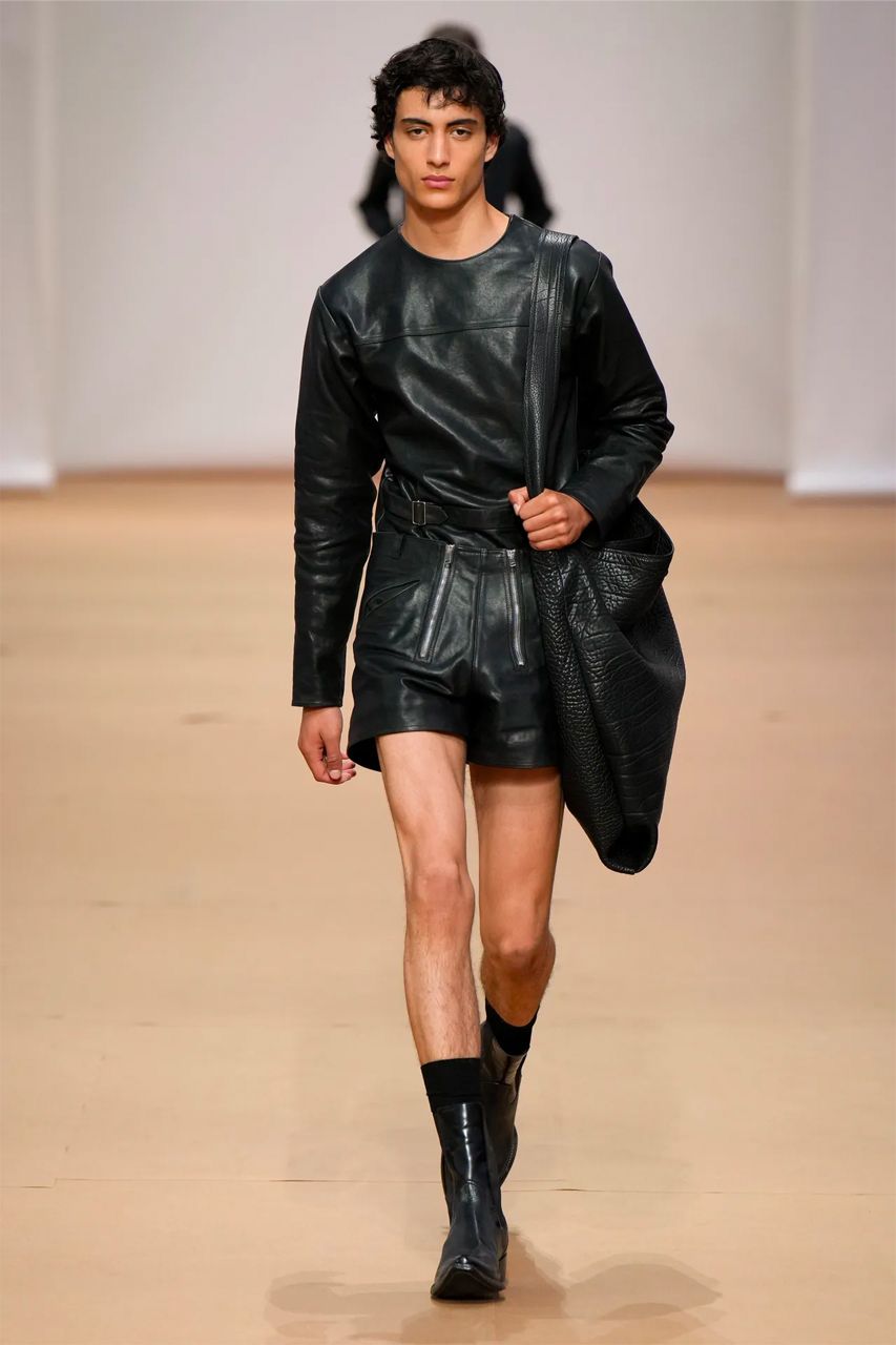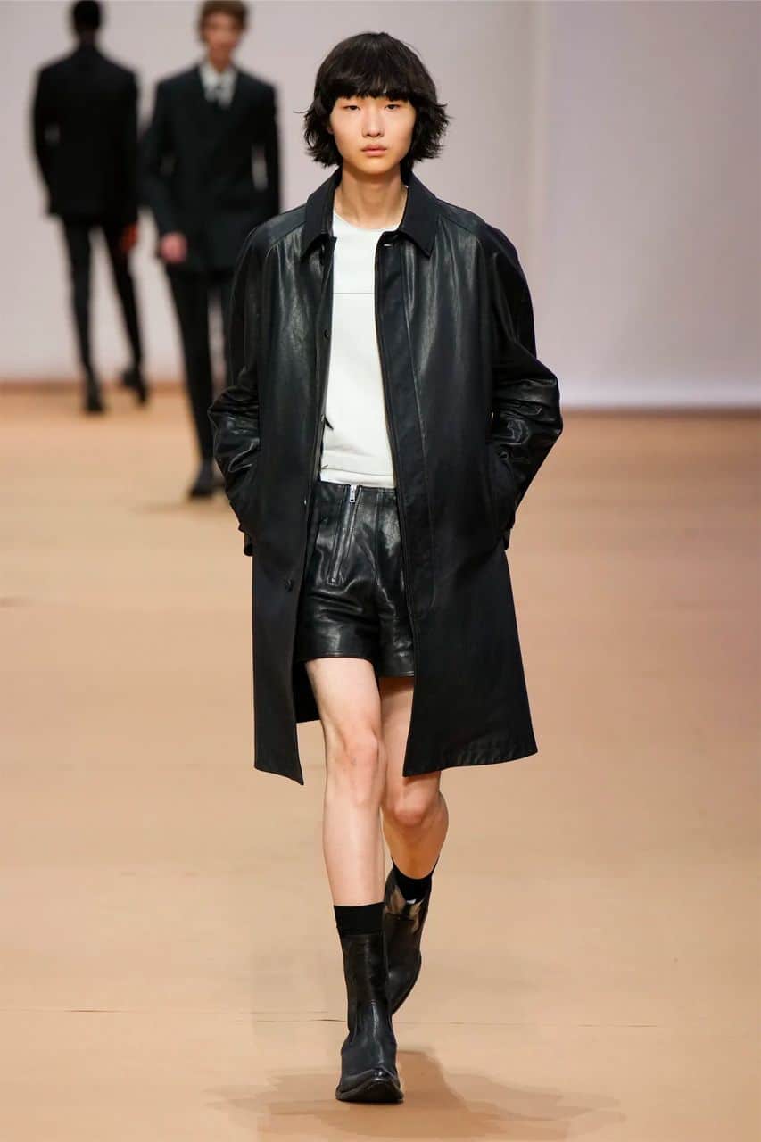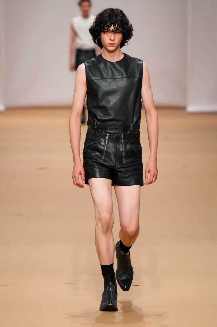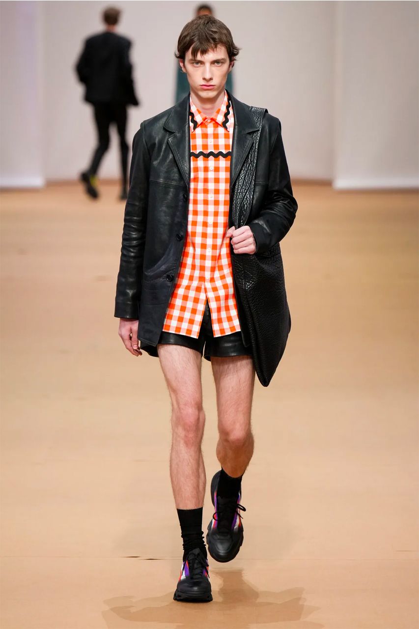 To co rzuca się w oczy, oprócz rzecz jasna świetnie skrojonych czarnych garniturów, to przede wszystkim skórzane krótkie (i to bardzo) szorty praz wykorzystanie drobnej kolorowej kraty. Zauważycie ją nie tylko na płaszczach, ale również na koszulach i lekkich kurtkach. Całość wyglądała niczym piknikowa uczta w odcieniach czerwieni, pomarańczu i koloru niebieskiego.