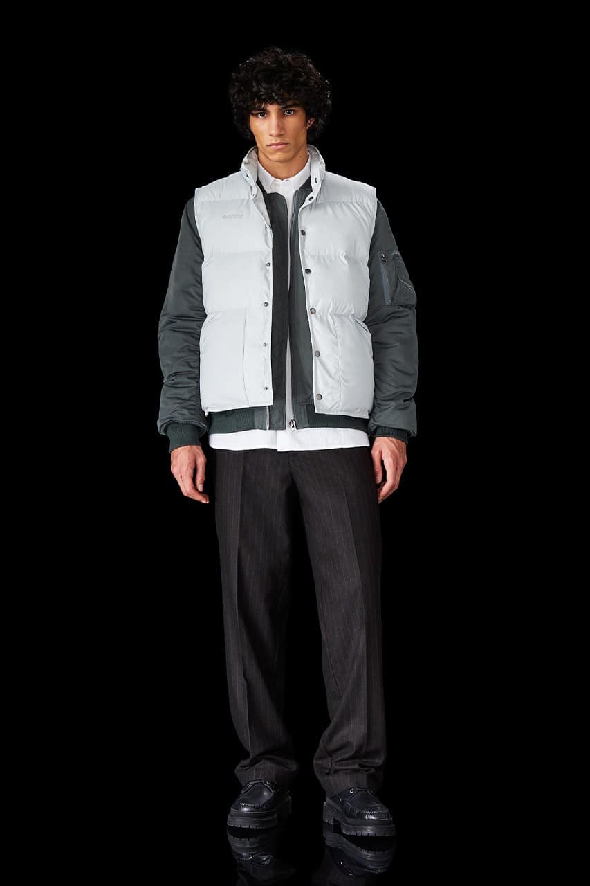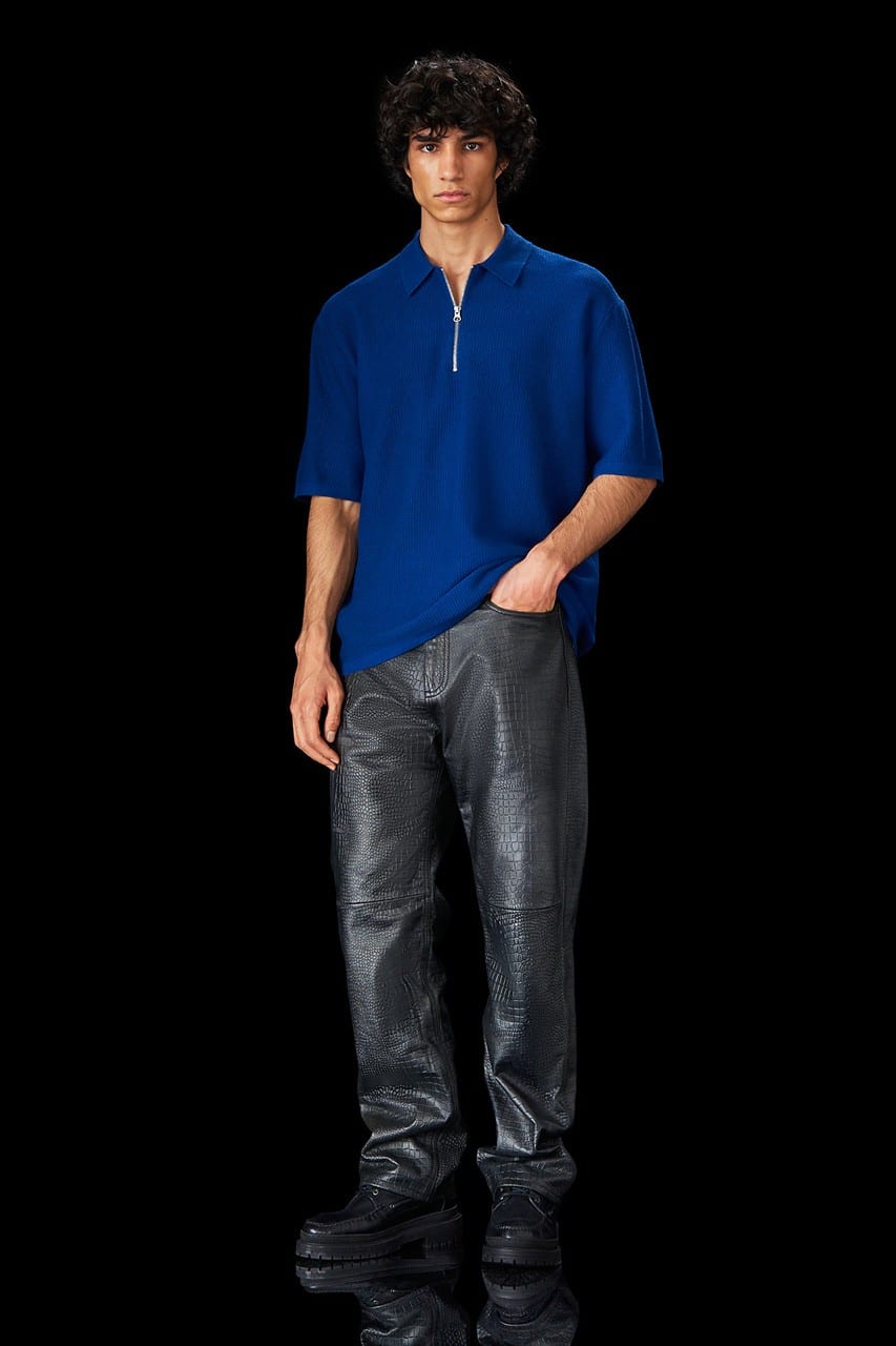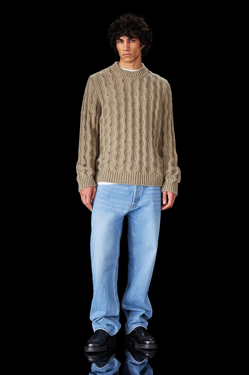Pośród nowości znajdzie szereg luźnych krojów i przerysowanych sylwetek. To co wychodzi przed szereg to propozycje w kolorze zielonym, który tak bardzo rozpowszechniła Bottega Veneta. Towarzyszą temu wzory w kratę oraz dzianiny z grubymi warkoczami. Obok tego zaprezentowano również szereg propozycji wykonanych ze skóry oraz dość luźne spodnie z prostymi nogawkami, które rolują się na butach.