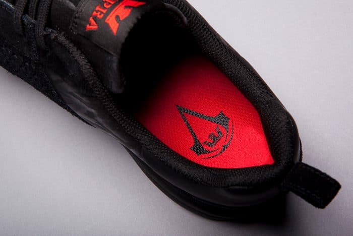 Dzięki temu zabiegowi, mamy do czynienia z klimatycznym zestawem, który obraca się wokół butów a każda parka wyposażona jest w elementy kojarzące się z naszym tytułowym zabójcą. Trzeba przyznać, że jest to ryzykowany romans. Przenoszenie elementów gry na cholewkę butów? Brzmi kosmicznie, ale czemu nie spróbować? Dlatego każdy z fanów do wyboru ma następujące modele Scissor, Skytop II oraz Skytop III. Tak jak wspominaliśmy, wybrane kicksy posiadają kolorystyki, które od razu kojarzą nam się głównym bohaterem i jego sprzymierzeńcami/wrogami a co więcej, każdy detal jest tutaj wykonany z olbrzymią starannością. Wystarczy na przykład spojrzeć na wkładkę z logiem Assassin’s Creed. Całość okraszona jest ciekawym lookbookiem oraz video-zajawką.