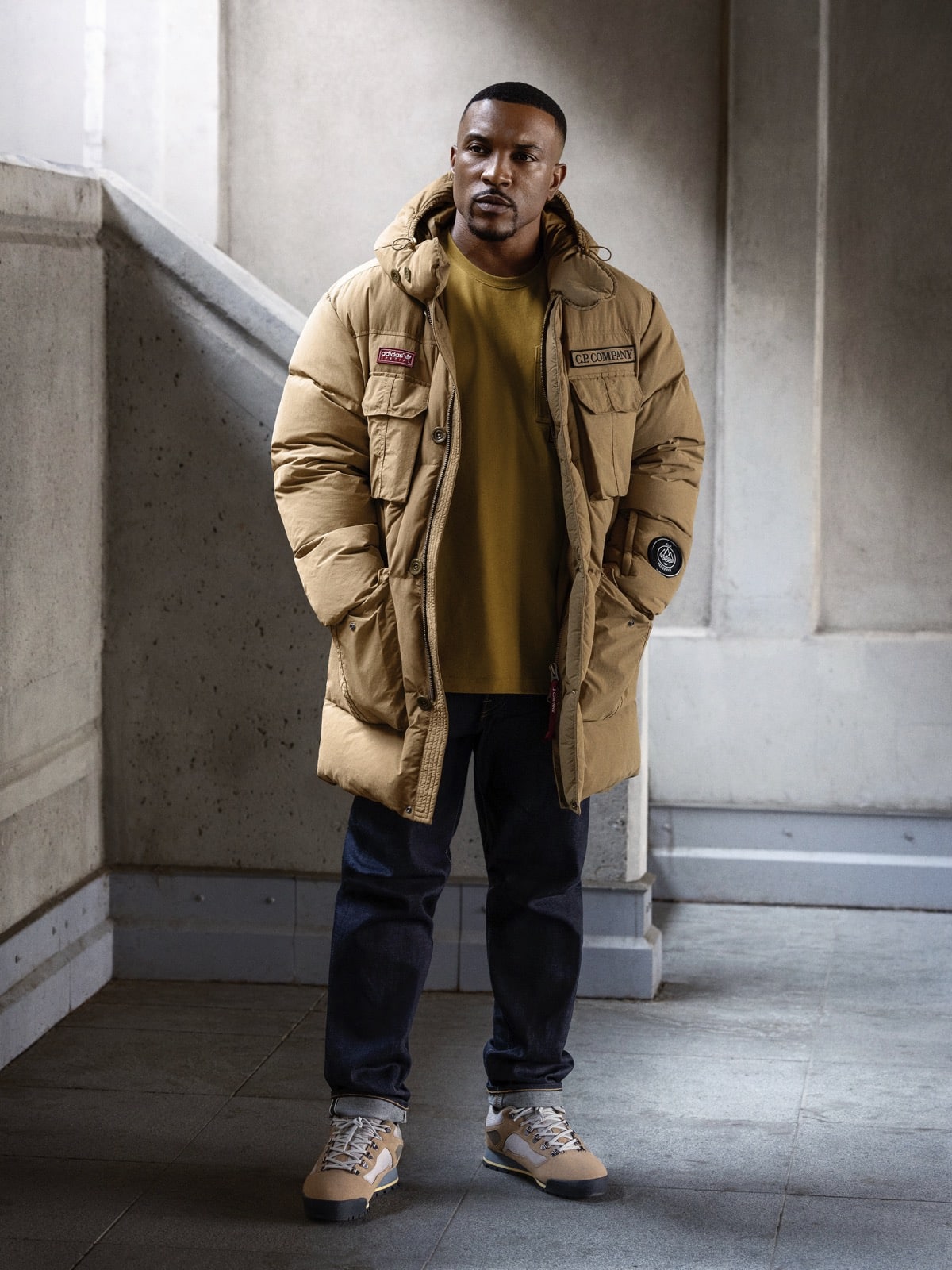 W części odzieżowej znajdziemy m.in. kurtki CP SPZL Puffer Jacket oraz Flying Jacket, które wyróżniają się włoskim rzemiosłem i odpinanymi detalami. Modele te są wykonane z lekkiego nylonu, z ikonicznym logo C.P. Company na rękawie. Kolekcję zamyka akcesoria, w tym torby, czapki i rękawice.