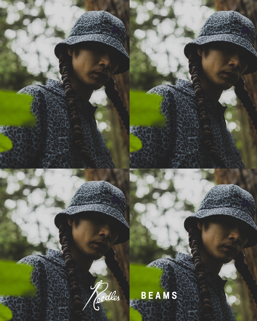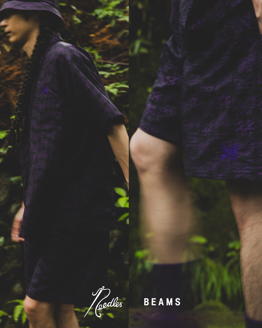 Prezentowany poniżej zestaw składa się z trzech propozycji: czapki bucket hat, koszuli z krótkim rękawem oraz szortów. Każda z wymienionych pozycji będzie dostępna w dwóch wersjach kolorystycznych: szarej i purpurowej. Pierwsza z nich bazuje na wzorze w lamparcie cętki, natomiast druga korzysta z motywu wzorzystego motyla, kojarzonego z marką Needles.