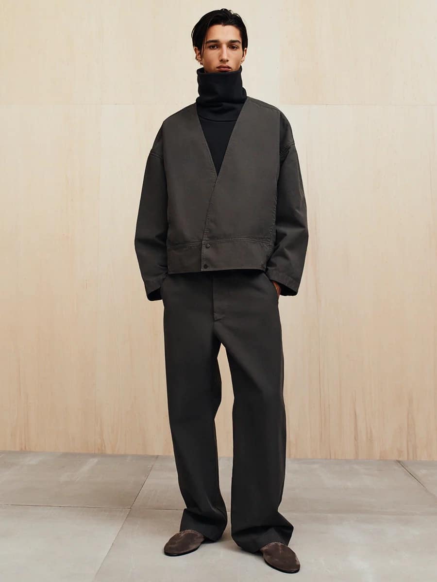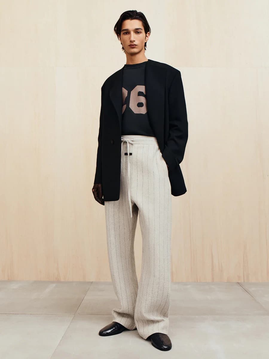 Kolekcja łączy klasyczne krawiectwo z luzem sportowego stylu. Oversize’owe marynarki, miękkie płaszcze i spodnie z szerokimi nogawkami tworzą sylwetki pełne harmonii i spokoju. Każdy detal odzwierciedla filozofię Fear of God — równowagę między elegancją a codziennością.