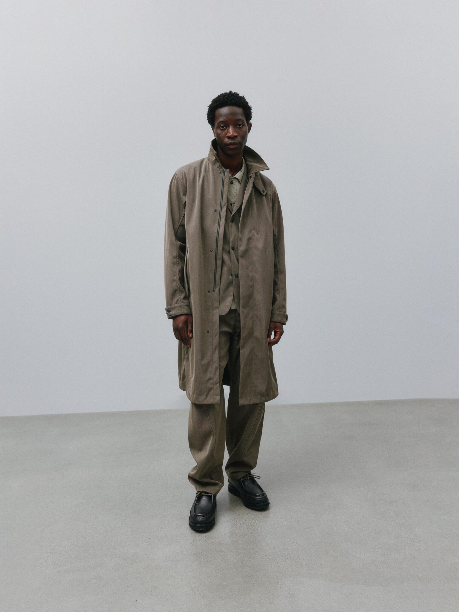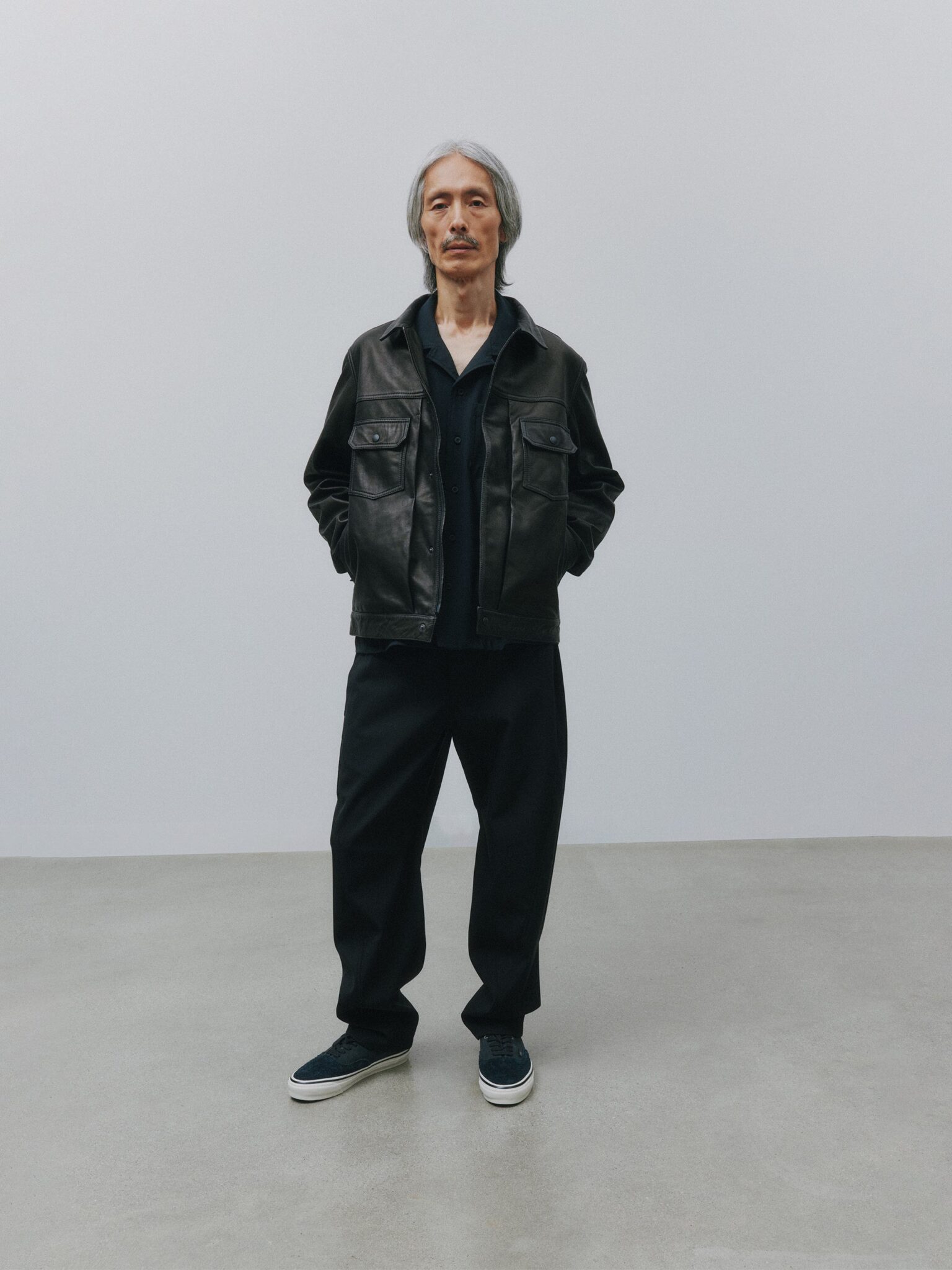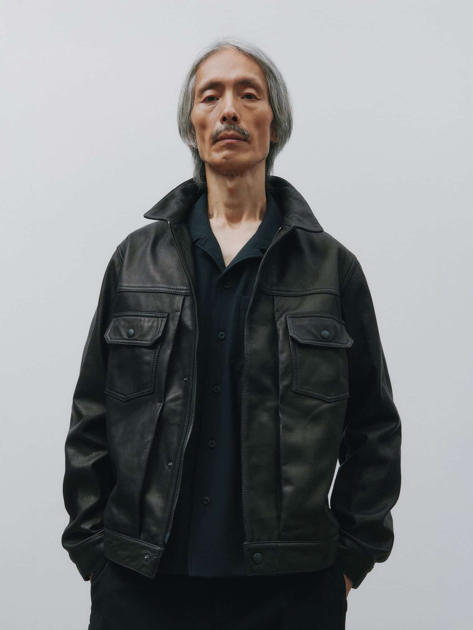 Tekstura i rzemiosło pozostają w centrum. Prane wykończenia nadają indywidualny charakter każdej sztuce. Station Jacket z miękkiej skóry bydlęcej wprowadza strukturę do modułowego systemu.