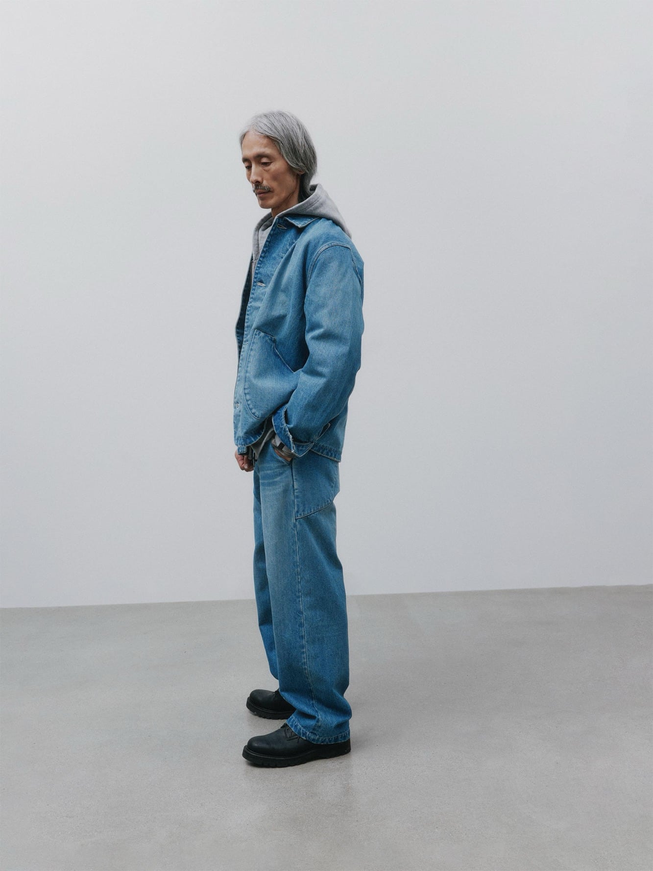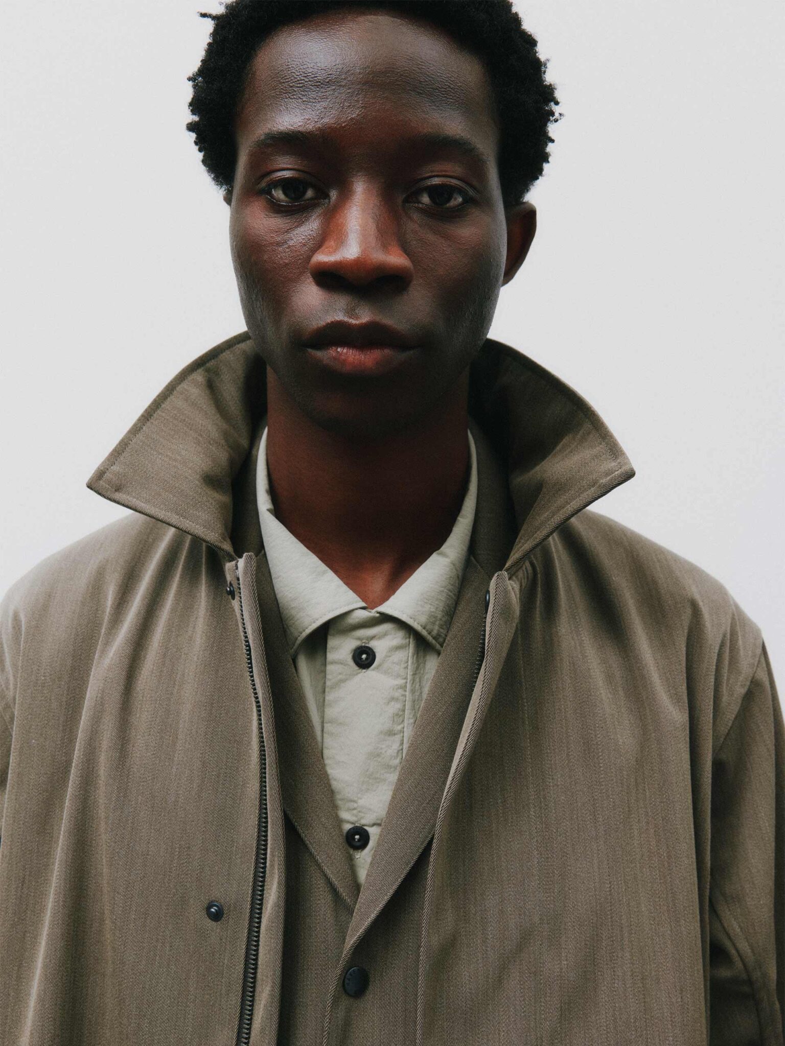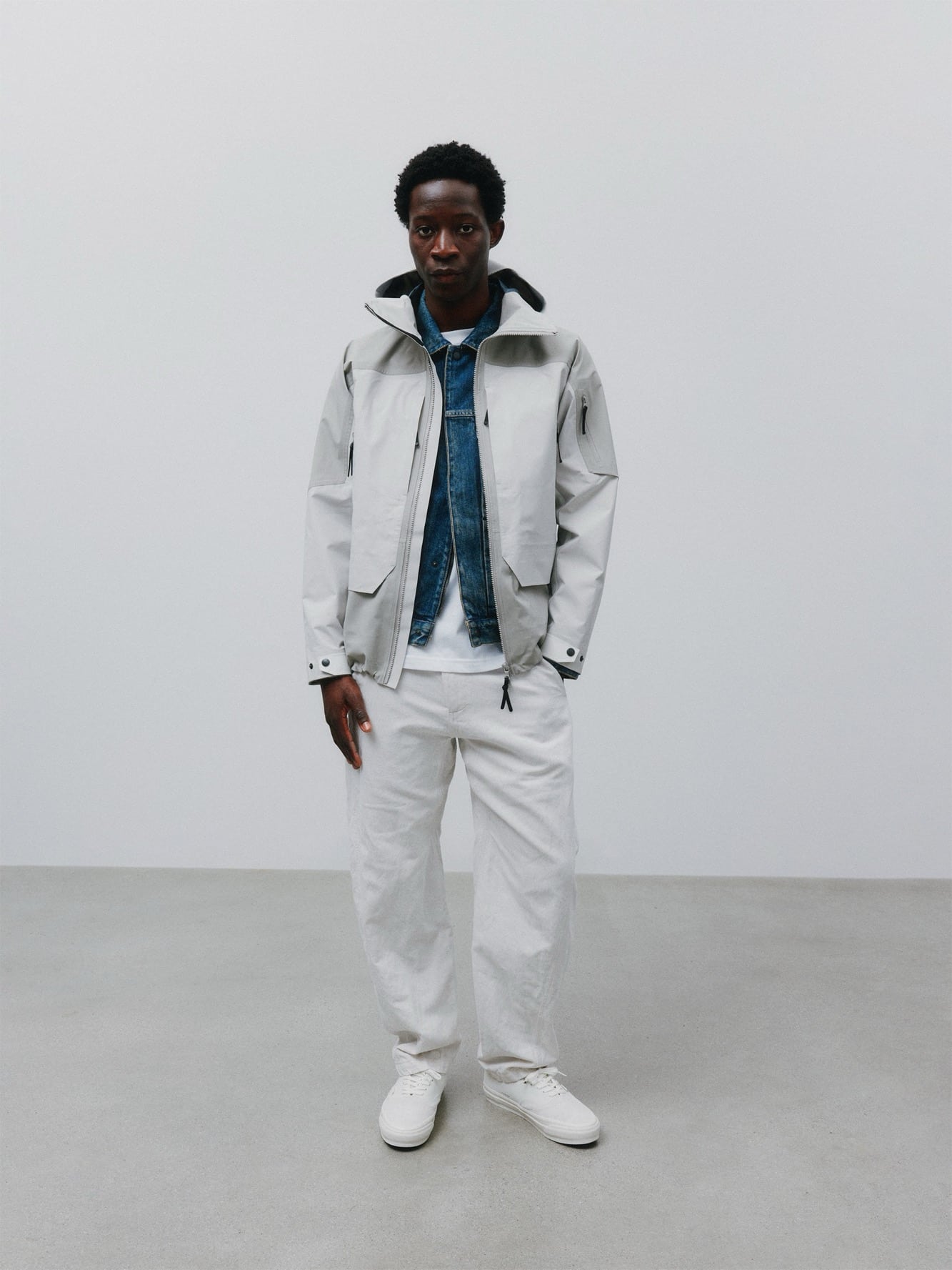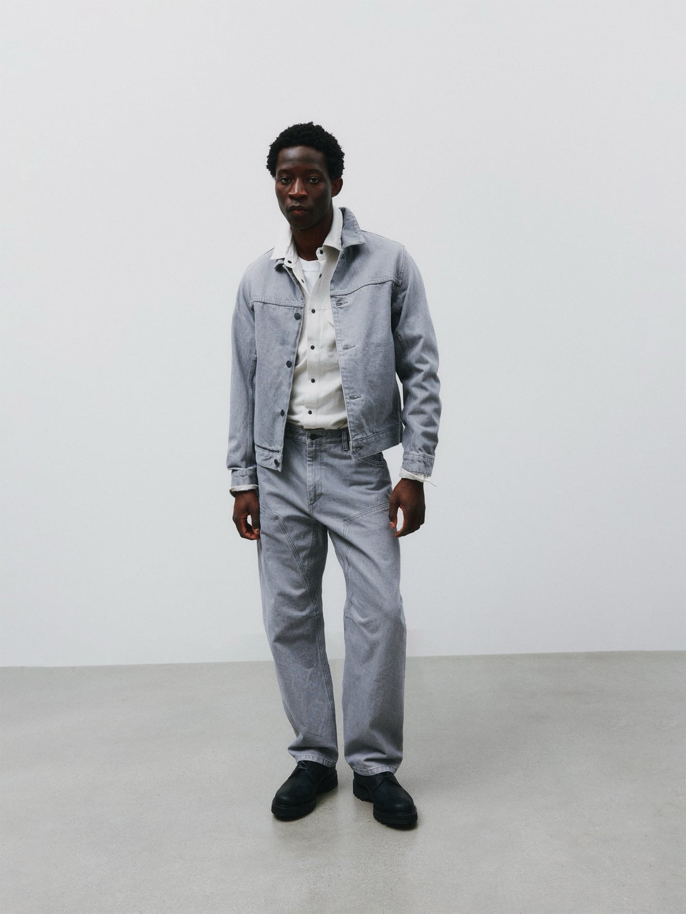 Tekstura i rzemiosło pozostają w centrum. Prane wykończenia nadają indywidualny charakter każdej sztuce. Station Jacket z miękkiej skóry bydlęcej wprowadza strukturę do modułowego systemu.