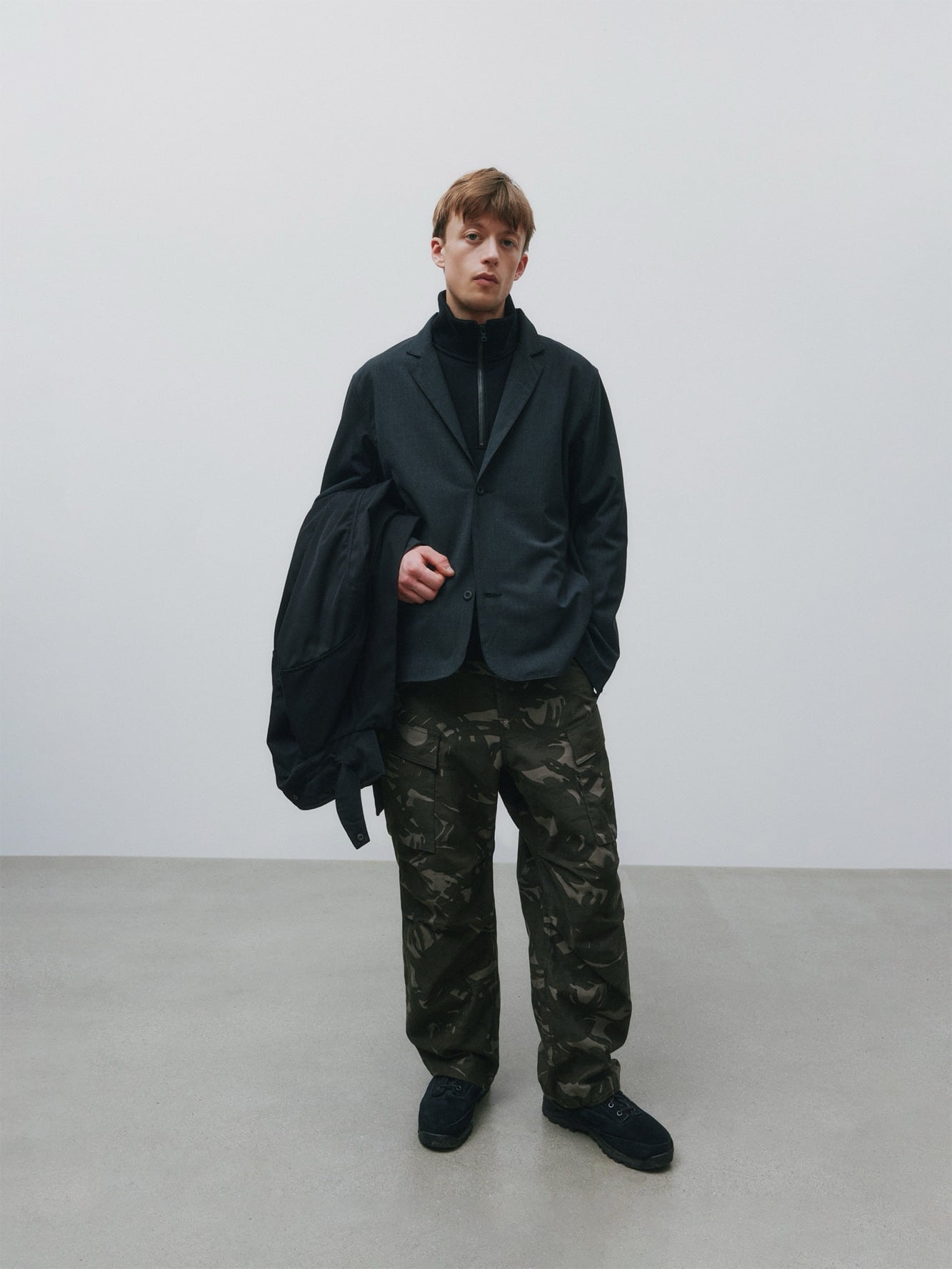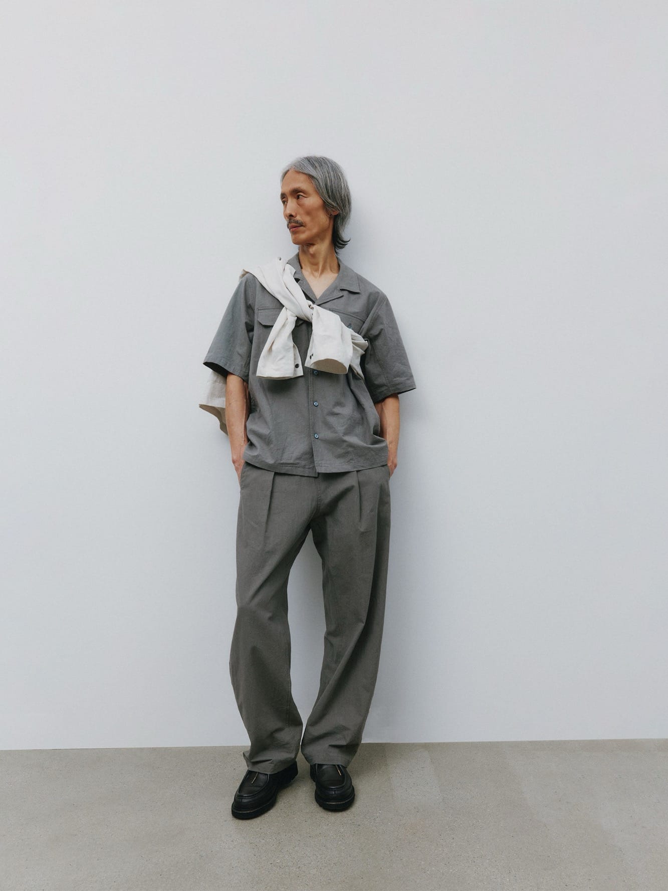 Tkaniny mówią same za siebie. Tropikalna wełna, kaszmirowo-bawełniana flanela, lniana popelina vintage i wełna Super 140s – każdy materiał wybrano pod kątem komfortu, układu i trwałości. Lżejsze struktury wprowadzają ruch i oddech tam, gdzie tego potrzeba.