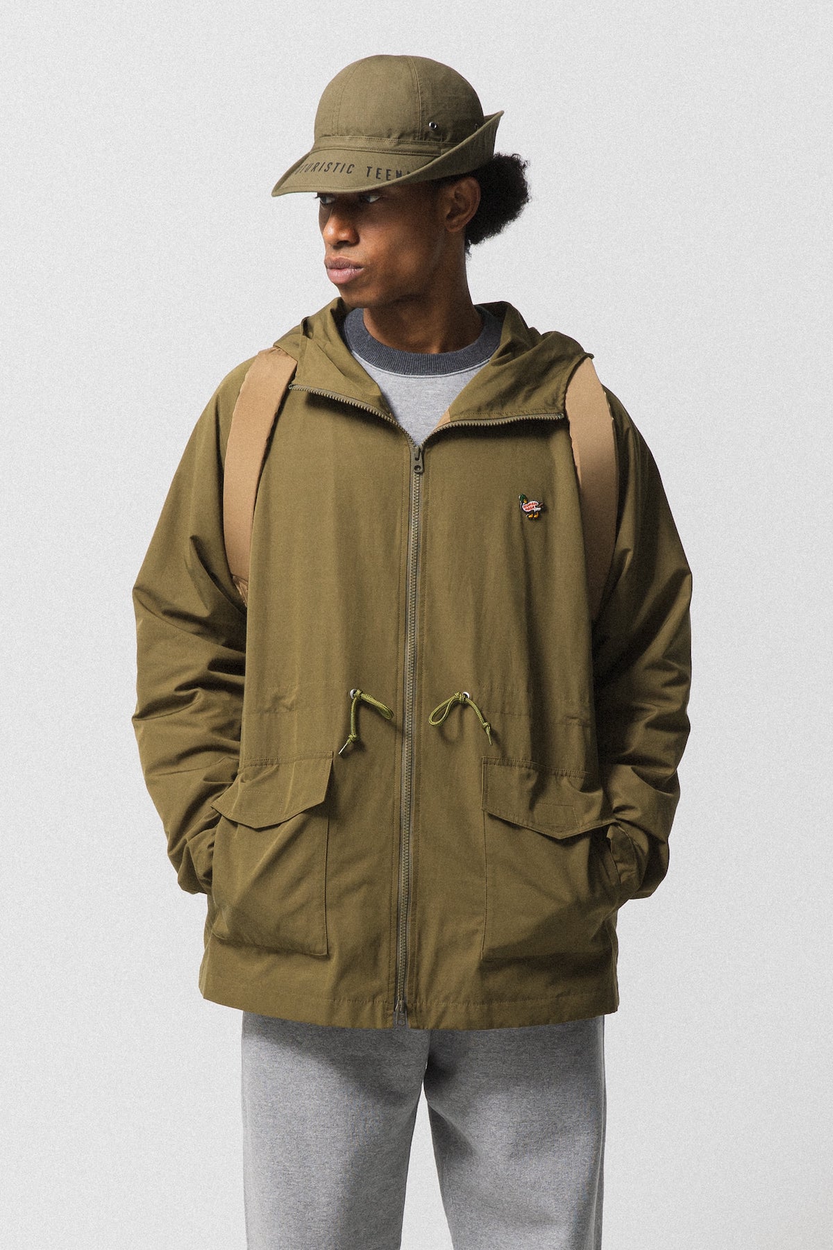 Band ze Kraju Kwitnącej Wiśni ponownie przedstawia połączenie klasycznej americany z wojskowy sznytem. Zerknijcie chociażby na lekkie wojskowe kurtki, koszule wojskowe czy spodnie bojówki. Obok tego zobaczycie kurtki baseballówki, sporo jassowych spodni i bluzy, zarówno z naszywkami, jak i napisami z nazwą brandu. Oczywiście nie brakuje hasła 'Gear for the futuristic teenagers’. Niemalże każdy zestaw jest dopełniony czapką, od tej z daszkiem, po bucket hat. W kolekcji dominują typowo wojskowe kolory, jak zieleń, brąz, beż oraz czerń.
