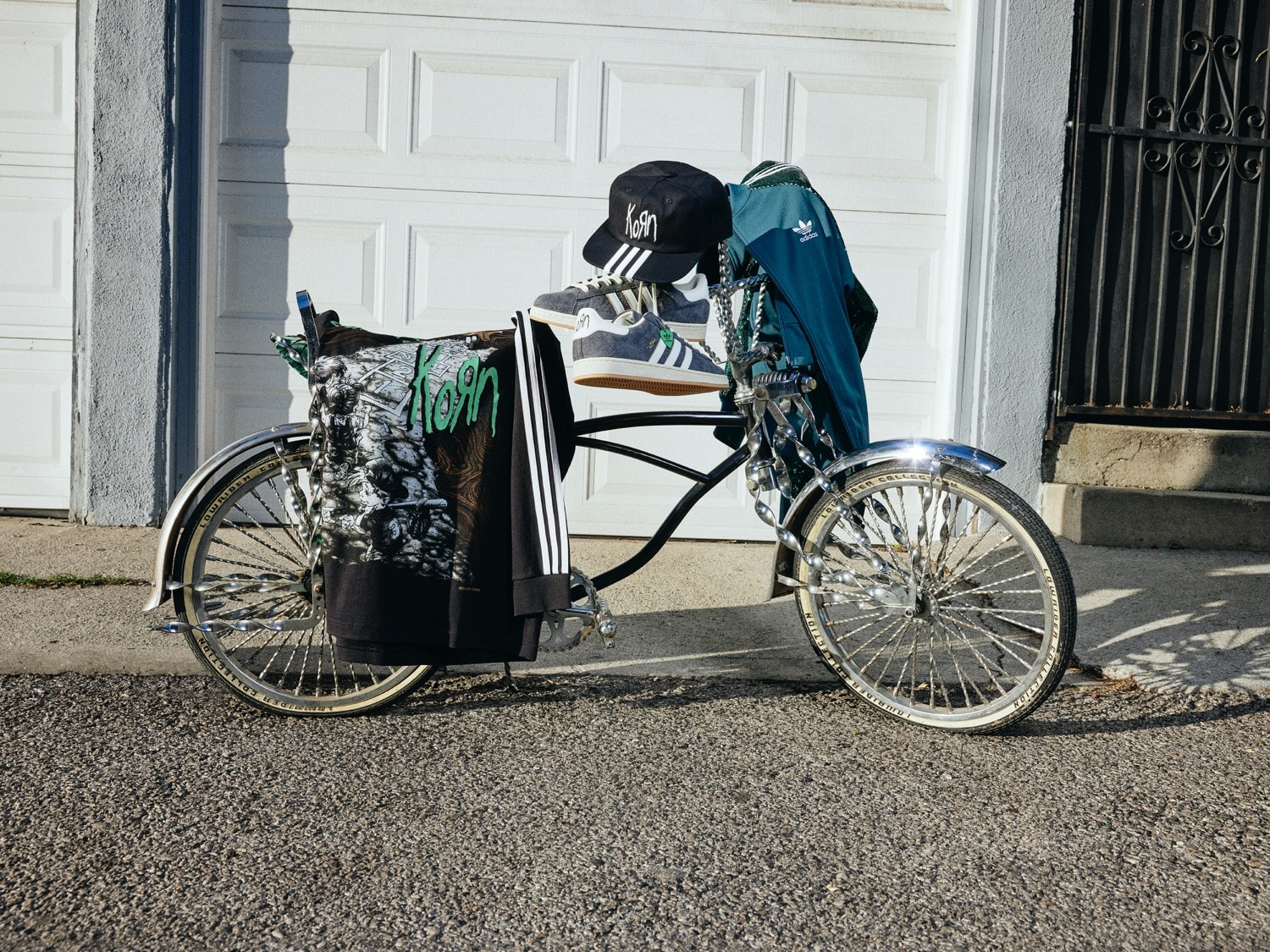 Korzystając z niekonwencjonalnego stylu zespołu i miłości do klasycznych dresów adidas z Trzema Paskami, kolekcja wyróżnia się zielonym, cekinowym topem oraz pasującymi spodniami, dostępnymi wyłącznie w internetowym sklepie KoRn. Oferta odzieżowa i akcesoriów obejmuje także longsleeve’y z Trzema Paskami na rękawach, trzy pary skarpetek i czapkę ozdobioną logo kapeli i detalami w postaci Trzech Pasków.