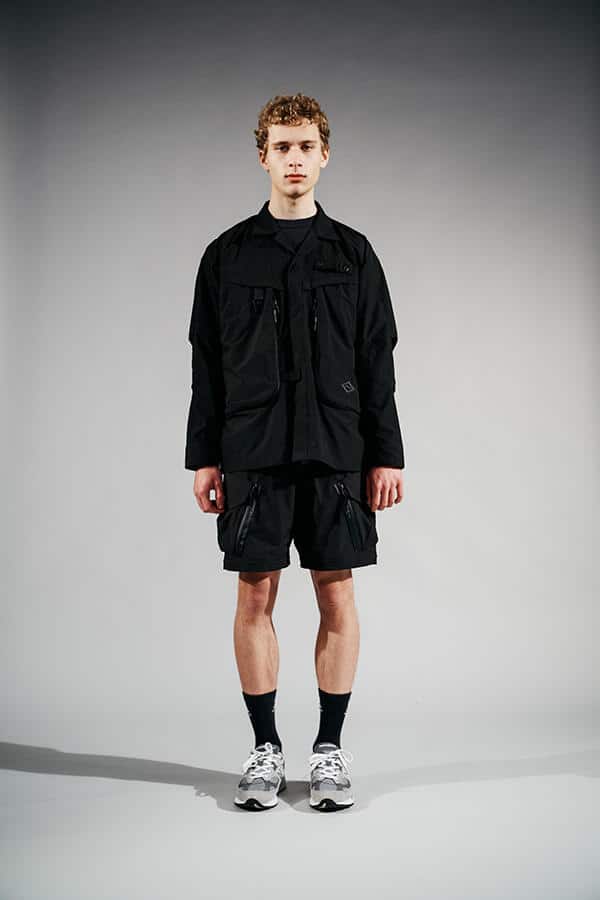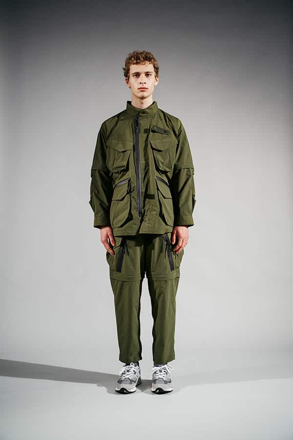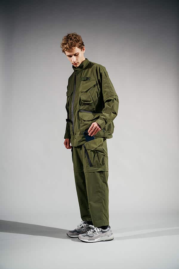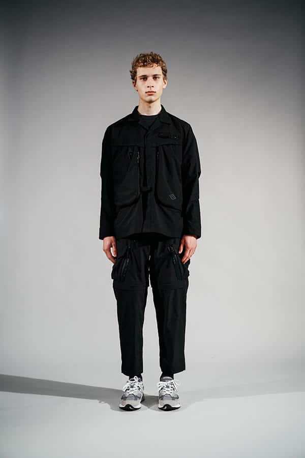 Brand działający z Tokio w tym przypadku serwuje nam propozycje z całkiem nowej linii, jak to sami określają z 'wyższego levelu’. Ta linia koncentruje się na wysokiej jakości materiałach, wzorach i gadżetach. Widać w niej utylitarne i militarne inspiracje, przez co otrzymujemy szereg koszul i spodni dopieszczonych wieloma kieszeniami. Co ciekawe, zarówno spodnie, jak i koszule można przystosować do cieplejszej aury poprzez odpięcie nogawek i rękawów. Do wyboru mamy propozycje w kolorze czarnym, ciemnoszarym oraz w zgniłej zieleni.
