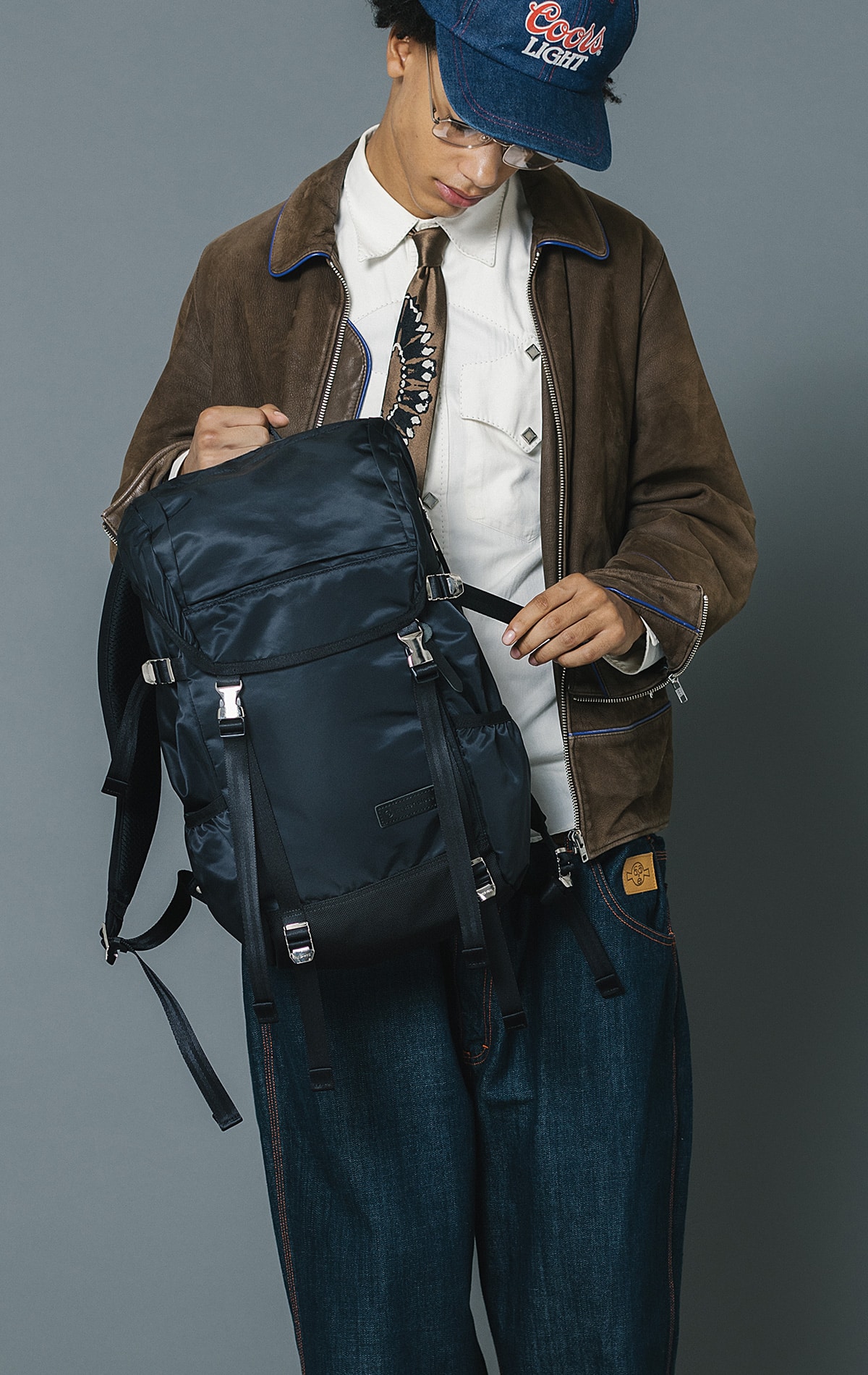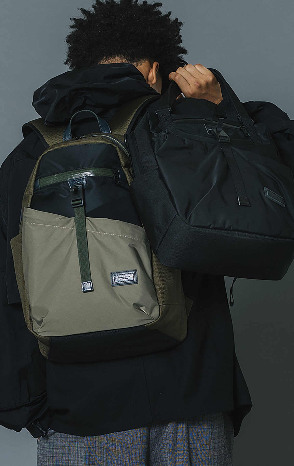 W palecie kolorystycznej dominują eleganckie barwy – granat, beż, czerń i oliwka, z odważnymi akcentami pomarańczowymi. Marka Master-Piece słynie z użycia zaawansowanych technologicznie materiałów, co czyni jej produkty nie tylko wytrzymałymi, ale także odpornymi na warunki atmosferyczne.