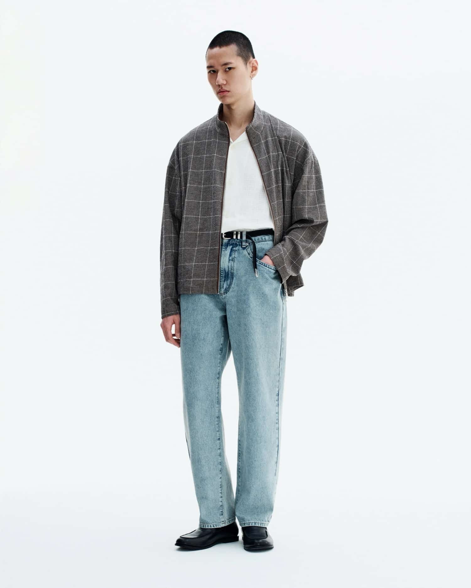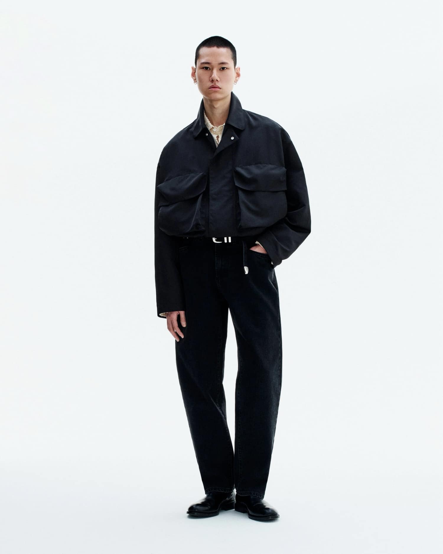 Sezon otwiera kurtka skórzana Cropped Leather Racer. Krótka, precyzyjna, bez kompromisów. Towarzyszą jej koszule w seersucker, poplin i skrętnym splocie – wszystkie w charakterystycznym dla marki pudełkowym kroju.