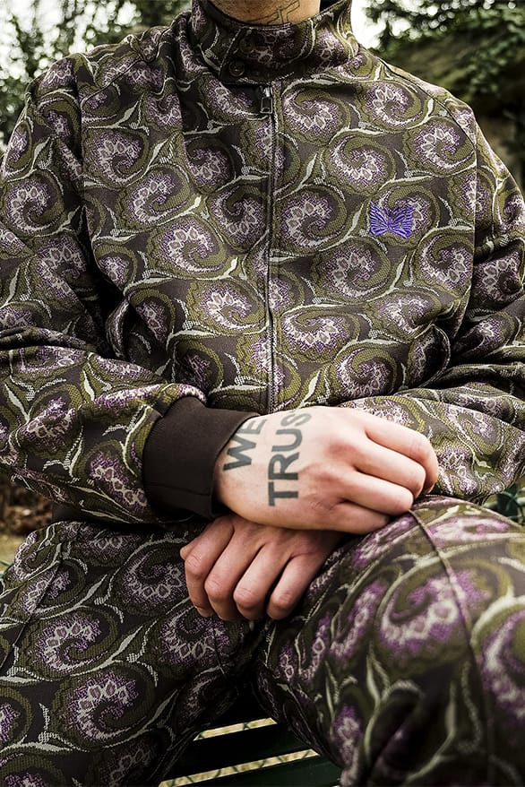 Wspomniana dwójka projektuje na tegoroczną wiosną trzyczęściowa kolekcję. Przedmiotem ich współpracy były kurtka Jacquard G9 Jacket, spodnie Jacquard Trousers oraz czapka Jacquard Hunting Hat, które zostały ozdobione odważną spiralną grafiką. Zestawy inspirowane dresami japońskiej marki są dostępne w trzech wersjach kolorystycznych i mają logo Needles w postaci motylka na piersi i nogawkach. Do wyboru mamy wersje w brązie, beżu oraz czerwieni, każde z kontrastowym wzorem.