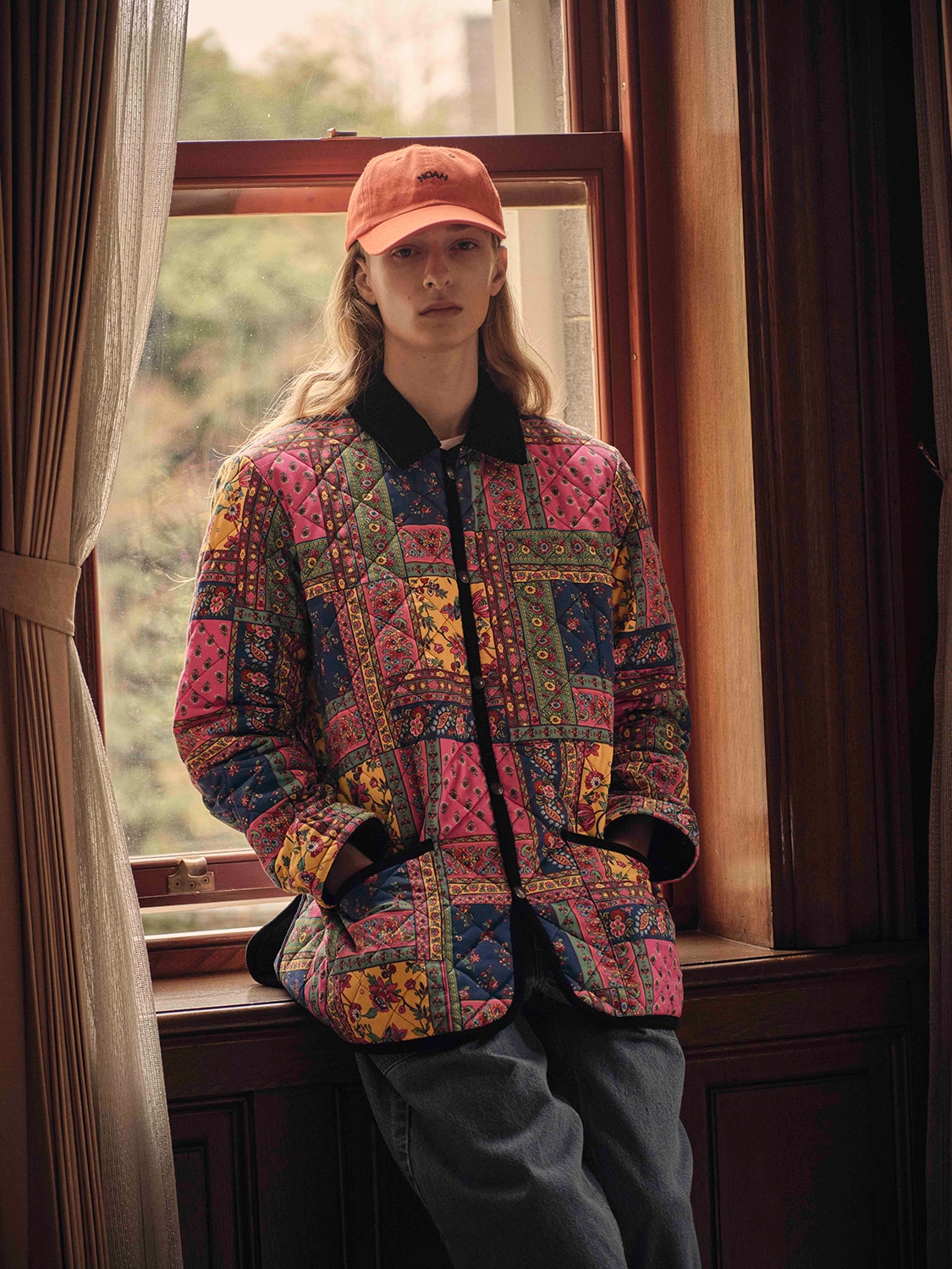 Kurtka Denham – wykonana w Suffolk w Anglii – jest pokryta charakterystycznym dla marki diamentowym pikowaniem. Dzięki prowansalskiemu nadrukowi na całej powierzchni ta wyrazista kurtka to propozycja doskonale „przygotowawcza”, charakteryzująca się lżejszą wersją słynnej sylwetki kurtki NOAH. Naszyte kieszenie w pasie i haftowane logo są wytłoczone na rękawie.