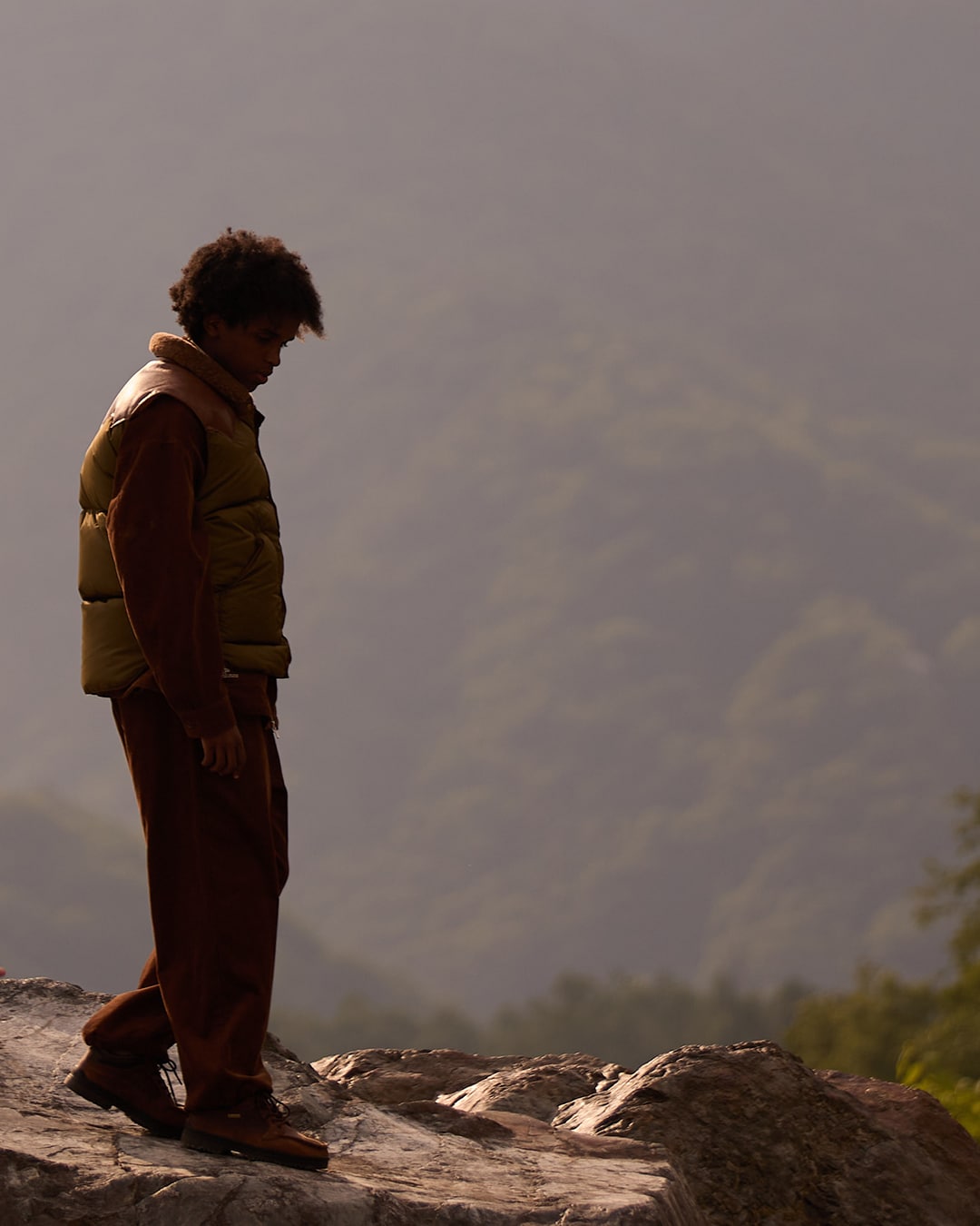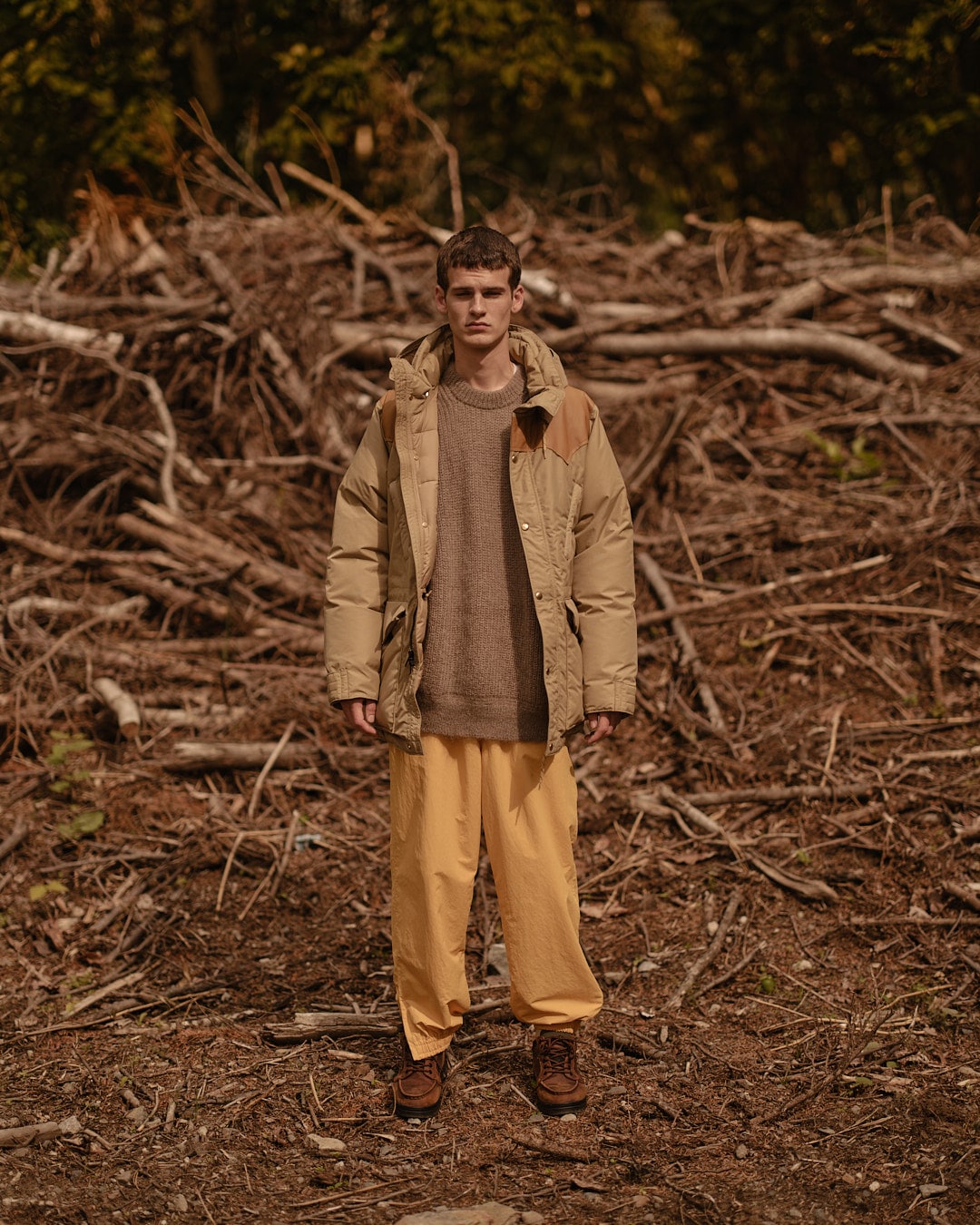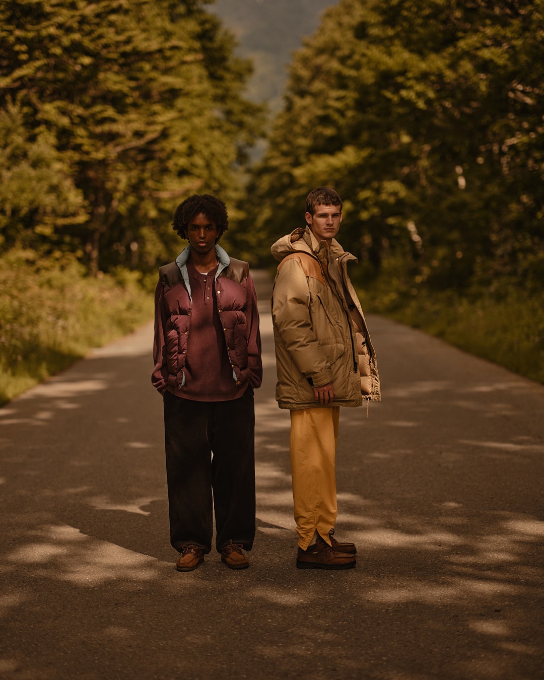 Każdy element kolekcji został dopracowany z obsesyjną dbałością o detale: charakterystyczne przeszycia, skórzane kołnierze i vintage’owe wzory kamuflażu spotykają się z nowoczesnymi tkaninami trójwarstwowymi i europejskim puchem. To połączenie historii amerykańskiego outdooru z japońską precyzją, które działa nie tylko w górach, ale i na miejskich ulicach.