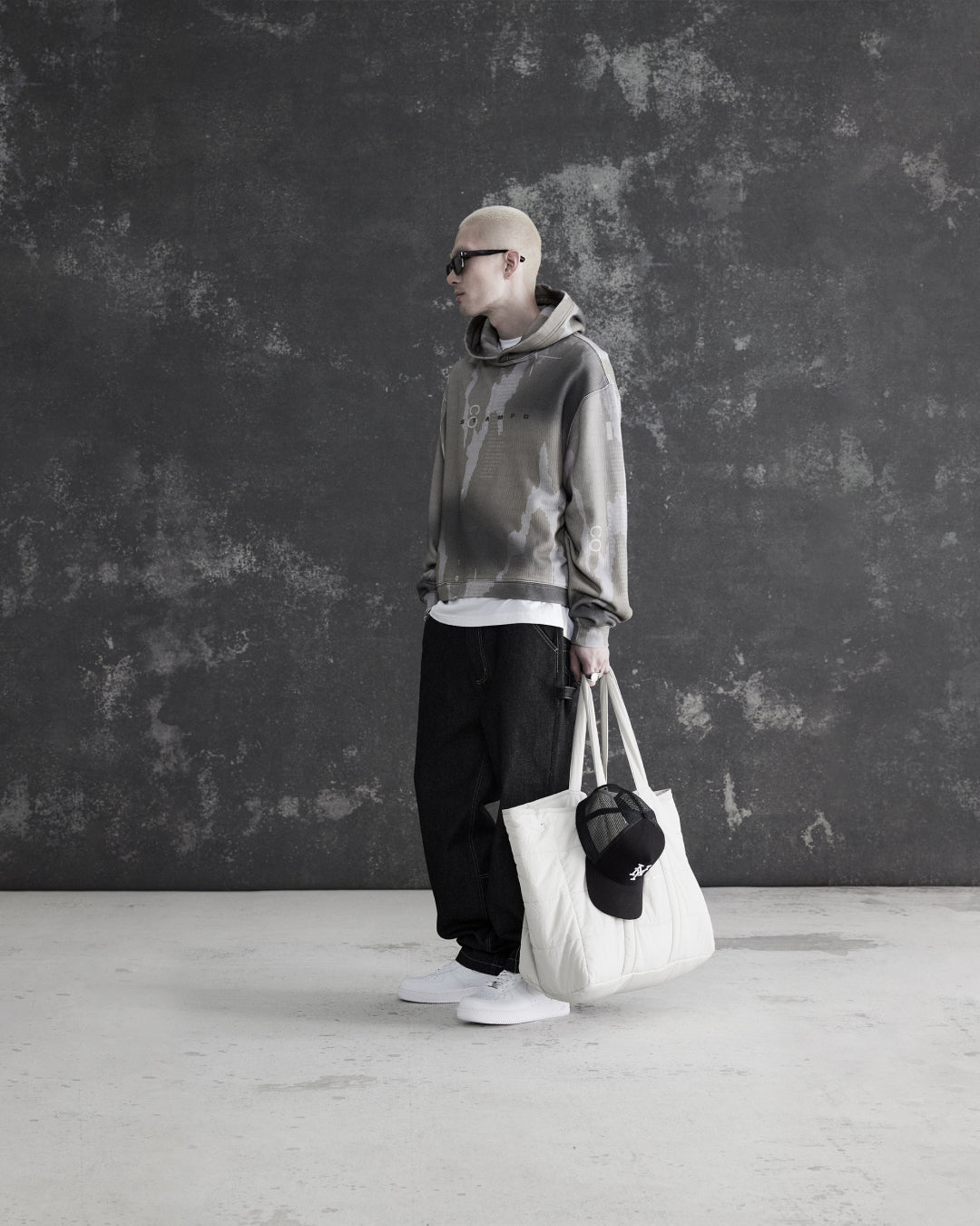 Chris Stamp serwuje nam tym razem dwie kurtki puchowe o krótkim i szerokim kroju, ozdobione wzorem kamuflażu oraz napisami i oznaczeniami. Do nich dołączają grube 'katany’ z polaru w kratę w odcieniach beżu i szarości, a także spodnie bojówki. Kolekcję uzupełniają T-shirty z nowymi projektami napisów i logotypów, a także bluzy z kapturem o krótkim kroju. Paleta barw zastosowana w tej kolekcji obejmuje odcienie khaki, beżu, szarości oraz czerni.