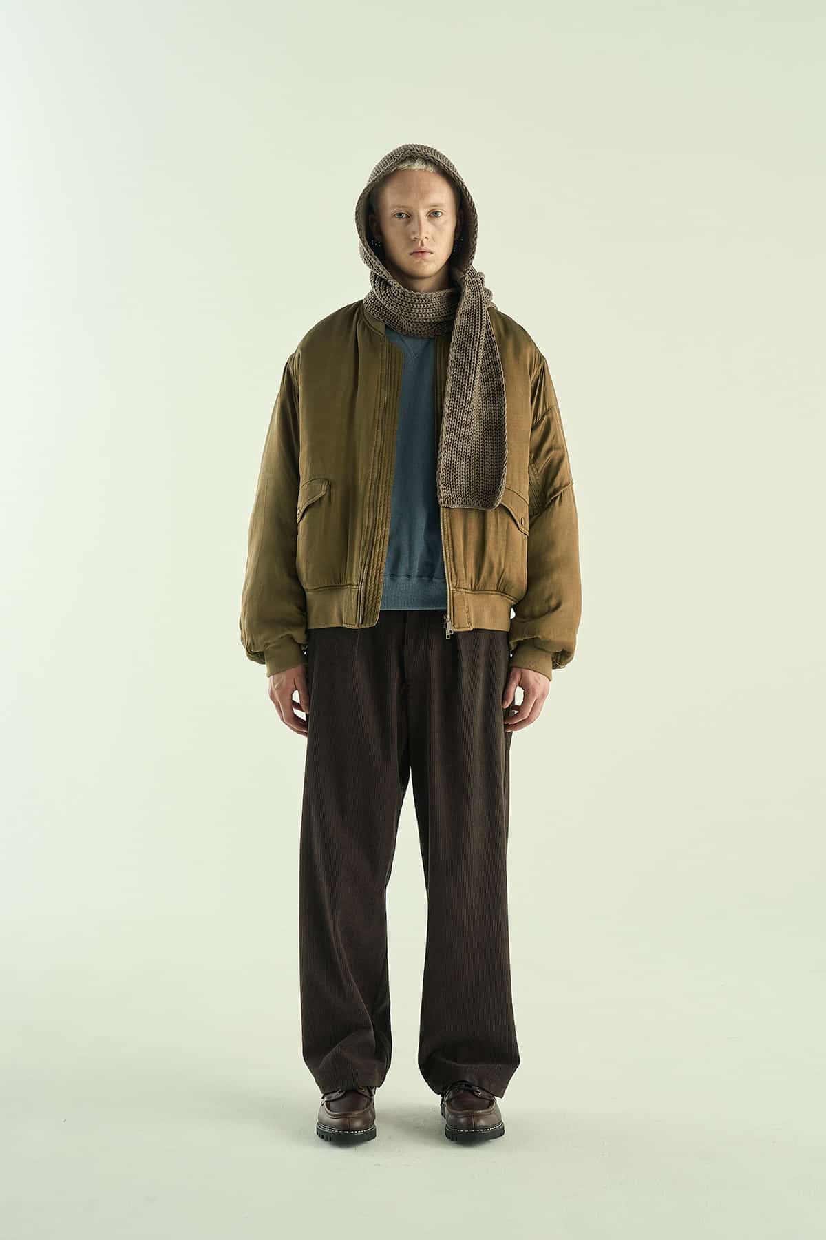 Założona przez Naoyukiego Shimotoriego marka od lat buduje estetykę balansującą między klasyką a nowoczesnością. Najnowsza kolekcja oferuje warstwowe fity, w których dominują oversize’owe płaszcze Chesterfield, parki o skróconym kroju i denim. Mocnym akcentem są tkaniny o vintage’owym wykończeniu, sztruksowe spodnie i dzianiny o grubym splocie.