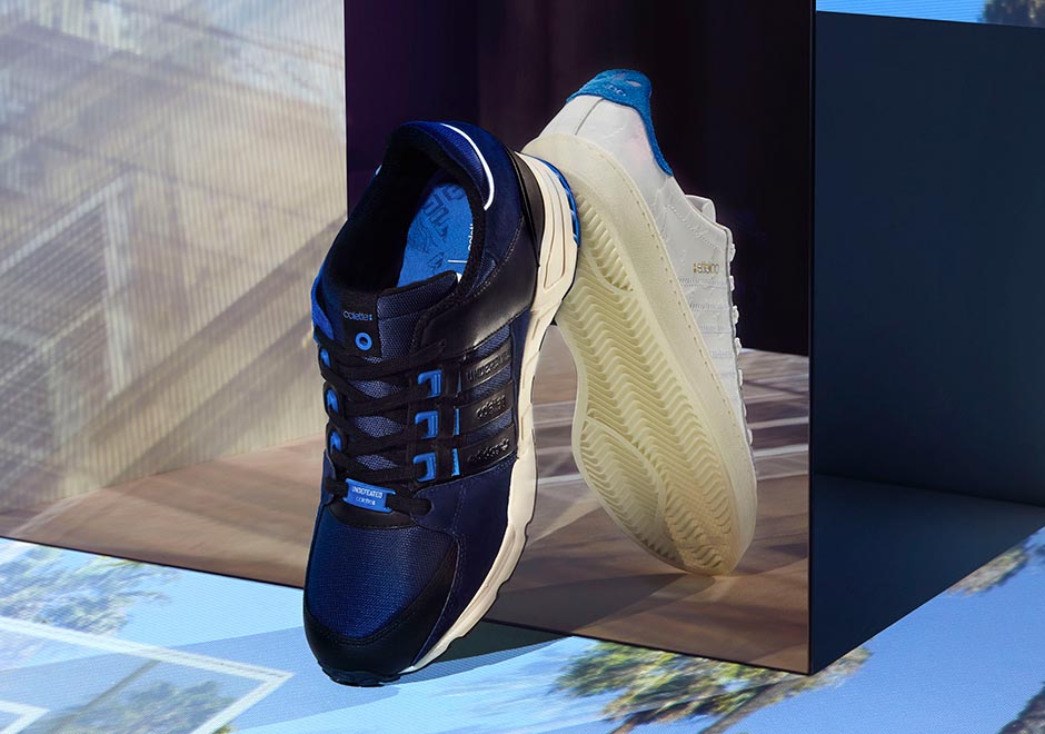 Za zaprojektowanie poniżej prezentowanych butów adidas EQT Support 93 oraz modelu Campus 80s odpowiedzialne są dwa sklepy z dwóch krańców świata. Mowa tu o paryskim colette oraz Undefeated z Los Angeles. Ten pierwszy model został zrobiony w dość ponury sposób, ponieważ łączy bardzo ciemny granat z czernią i jedynie lacelock czy oczka na sznurówki mamy niebieskie, a całość osadzono na białej podeszwie. Z kolei jeśli zerkniemy na Campusy to od razu widzimy tu talent francuzów do prostoty i charakterystycznego dla nich połączenia bieli z kolorem niebieskim. Warto zwrócić uwagę na detale, trzy paski po boku czy branding każdej ze stron.
